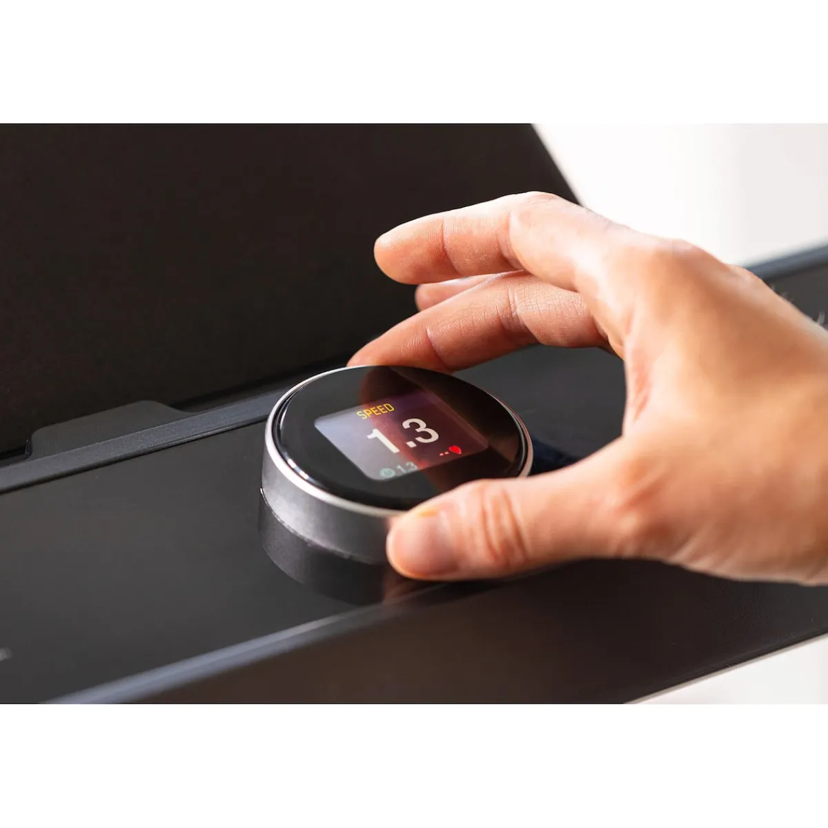 Die integrierten Handpulssensoren in den Griffen ermöglichen eine bequeme Überwachung Ihrer Herzfrequenz während des Trainings, und die Geschwindigkeit kann in präzisen 0,1 km/h-Schritten von 1 bis 16 km/h eingestellt werden.