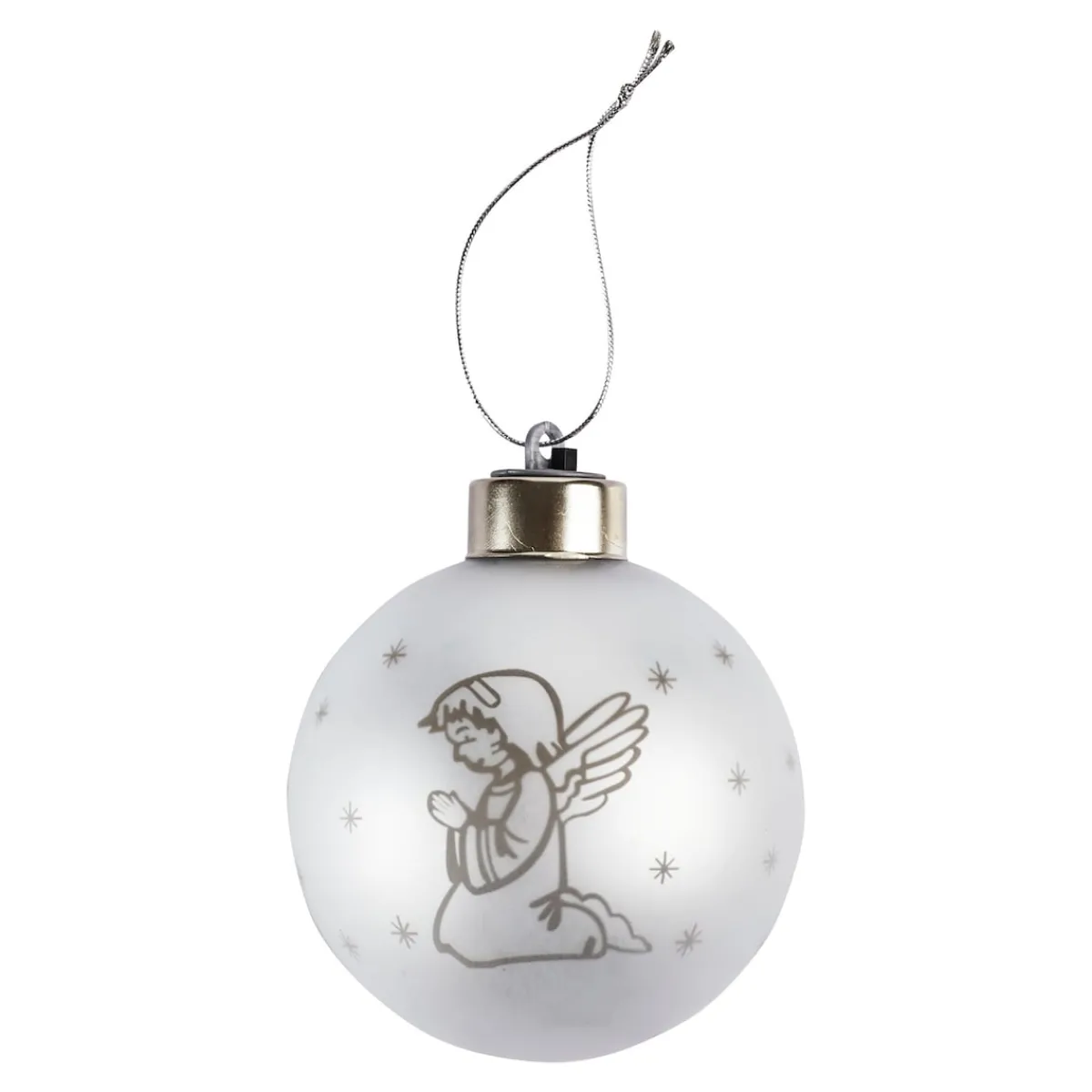 Beleuchten Sie Ihren Weihnachtsbaum mit dieser sanft schimmernden Christbaumkugel. Der betende Engel unter dem Sternenhimmel trägt zu einer friedvollen Weihnachtsstimmung bei. Inklusive Aufhänger und gratis Batterien.