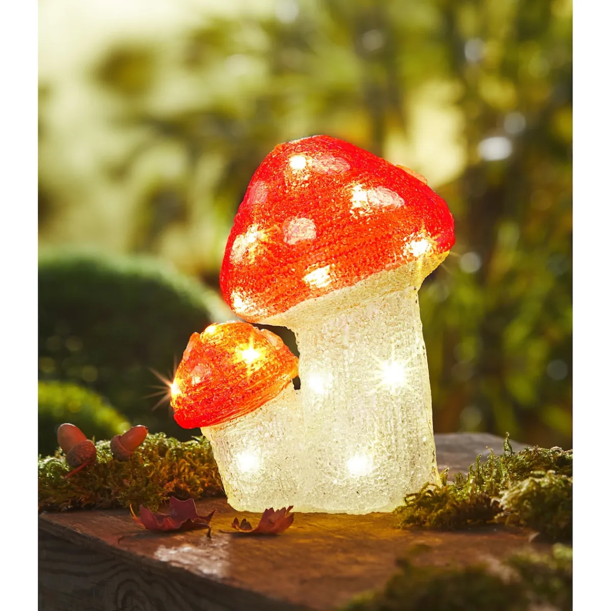In der herbstlichen Dämmerung verzaubert dieses charmante Glückspilz-Duo Ihre Gäste aufs Herzlichste: Das warmweiße Licht strahlt eine einladende Atmosphäre aus. Geeignet für den geschützten Außenbereich.