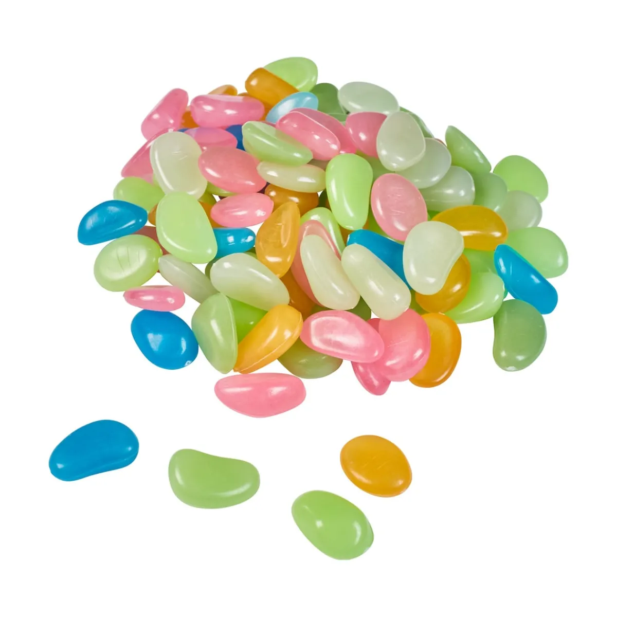 Tagsüber erheitern die Kieselsteine mit ihren bunten Farben viele verschiedene Bereiche im Garten und setzen markante Akzente, z. B. an Wegen oder in Beeten. Dort laden sie sich mit Sonnenenergie auf und verwandeln sich nachts wie von Zauberhand in selbstleuchtende Objekte. Auch im Wohnbereich ein Hingucker. Set aus ca. 100 Steinen.