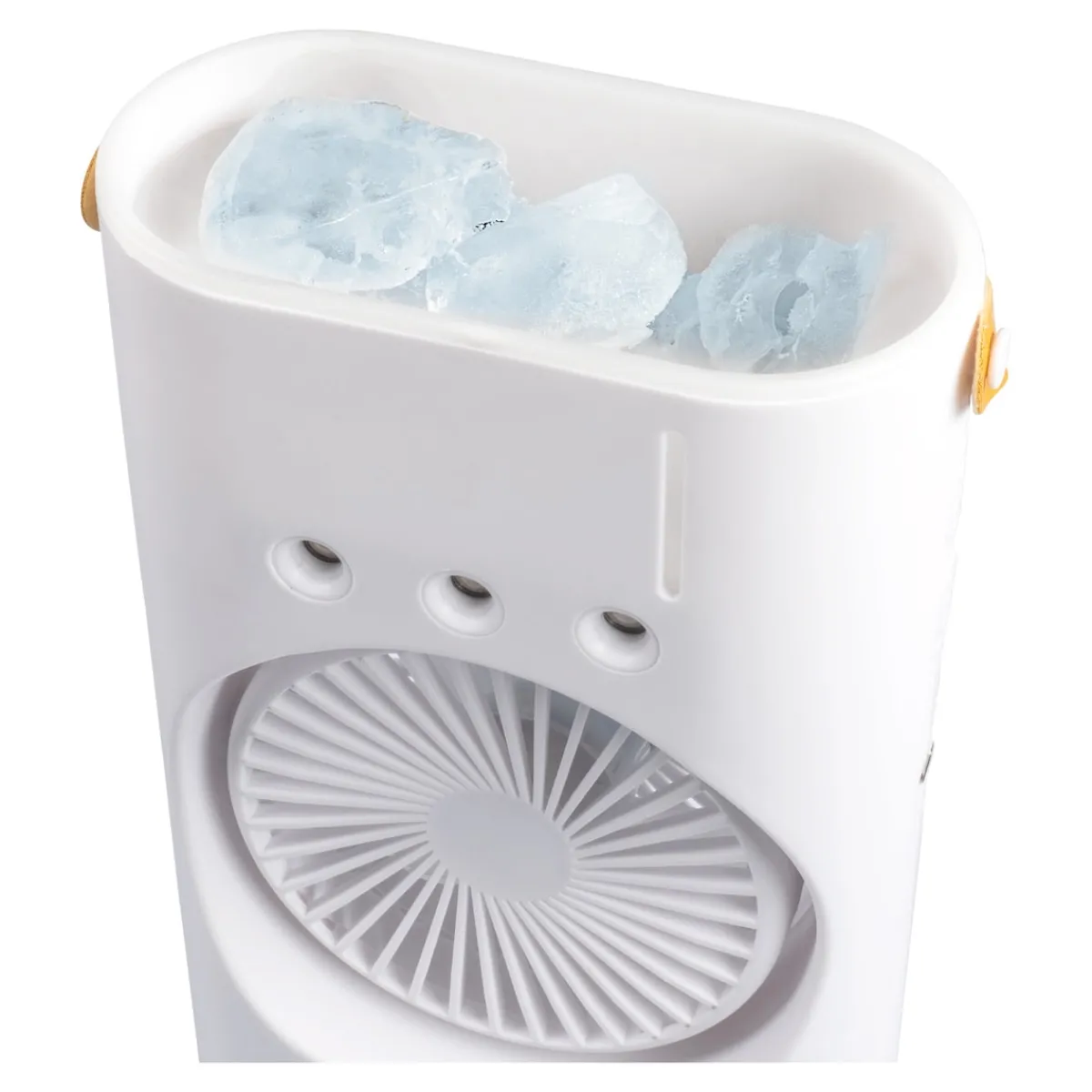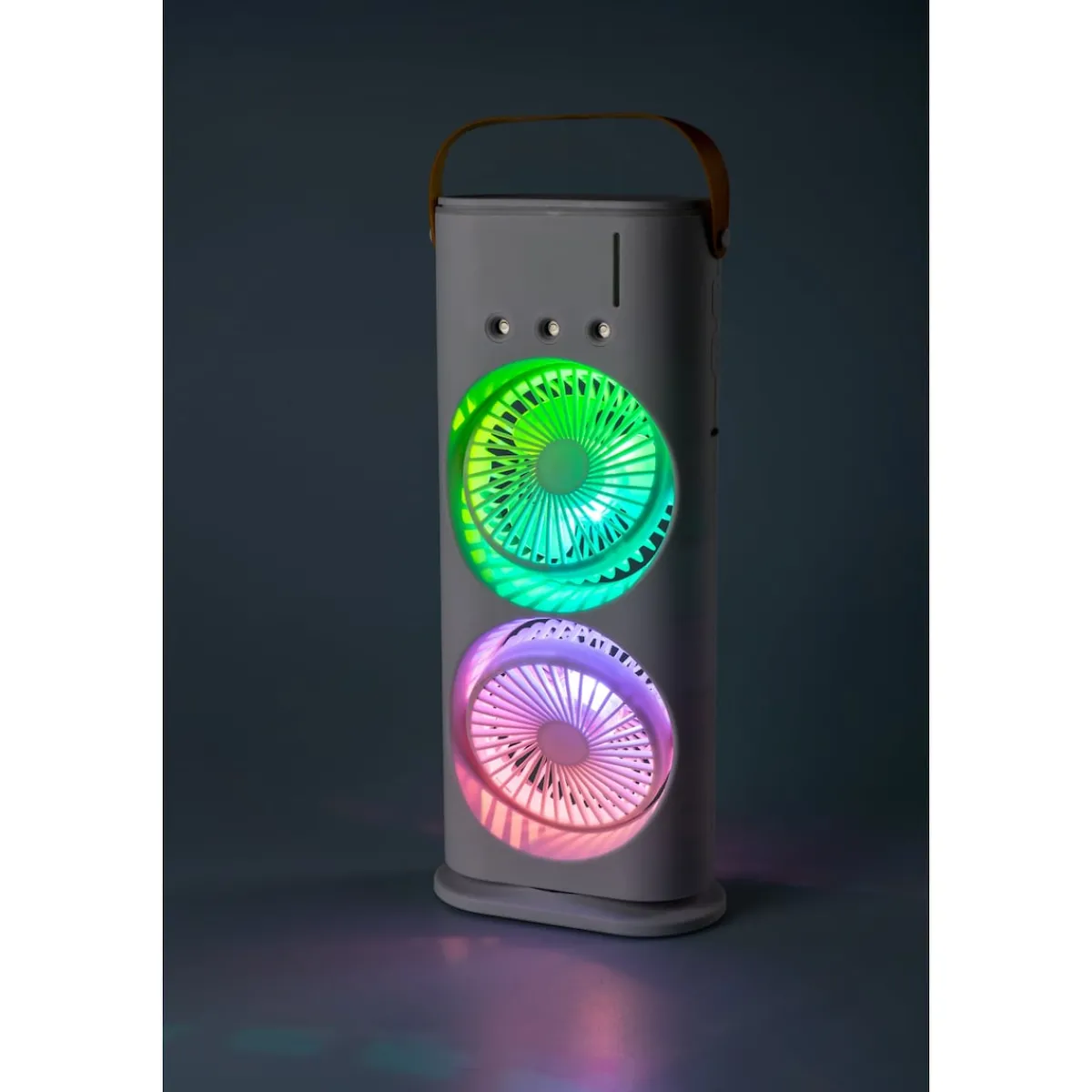 Hitzewelle in Sicht? Kein Problem! Mit diesem Premium-Luftkühler genießen Sie stets frische, kühle Luft. 2 individuell einstellbare Ventilatoren und 3 Sprühdüsen sorgen für eine angenehme Raumluft und befeuchten sie mit einem feinen Wassernebel. Cooles Extra: Die LED-Lichter mit Farbwechsel schaffen ein stimmungsvolles Ambiente. Inkl. Fernbedienung und USB-Ladekabel.