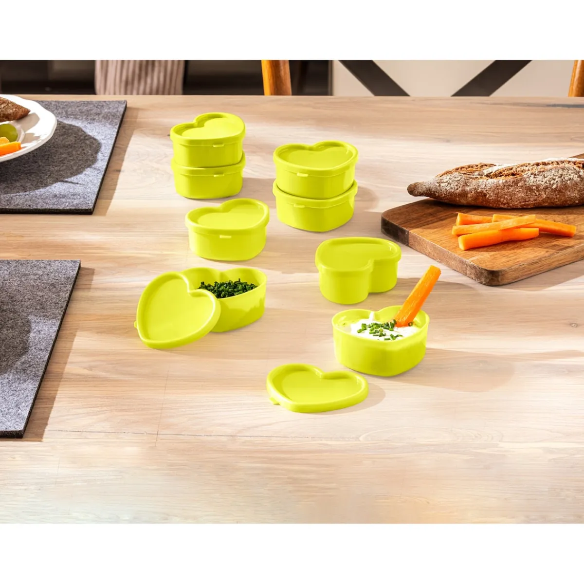 Unsere Mini-Dosen sind ideal für Dips, Gewürze und Snacks. Die süße Herzform verleiht jedem Tisch eine besondere Note, während der Deckel den Inhalt lange frisch hält. Perfekt für zu Hause oder unterwegs.