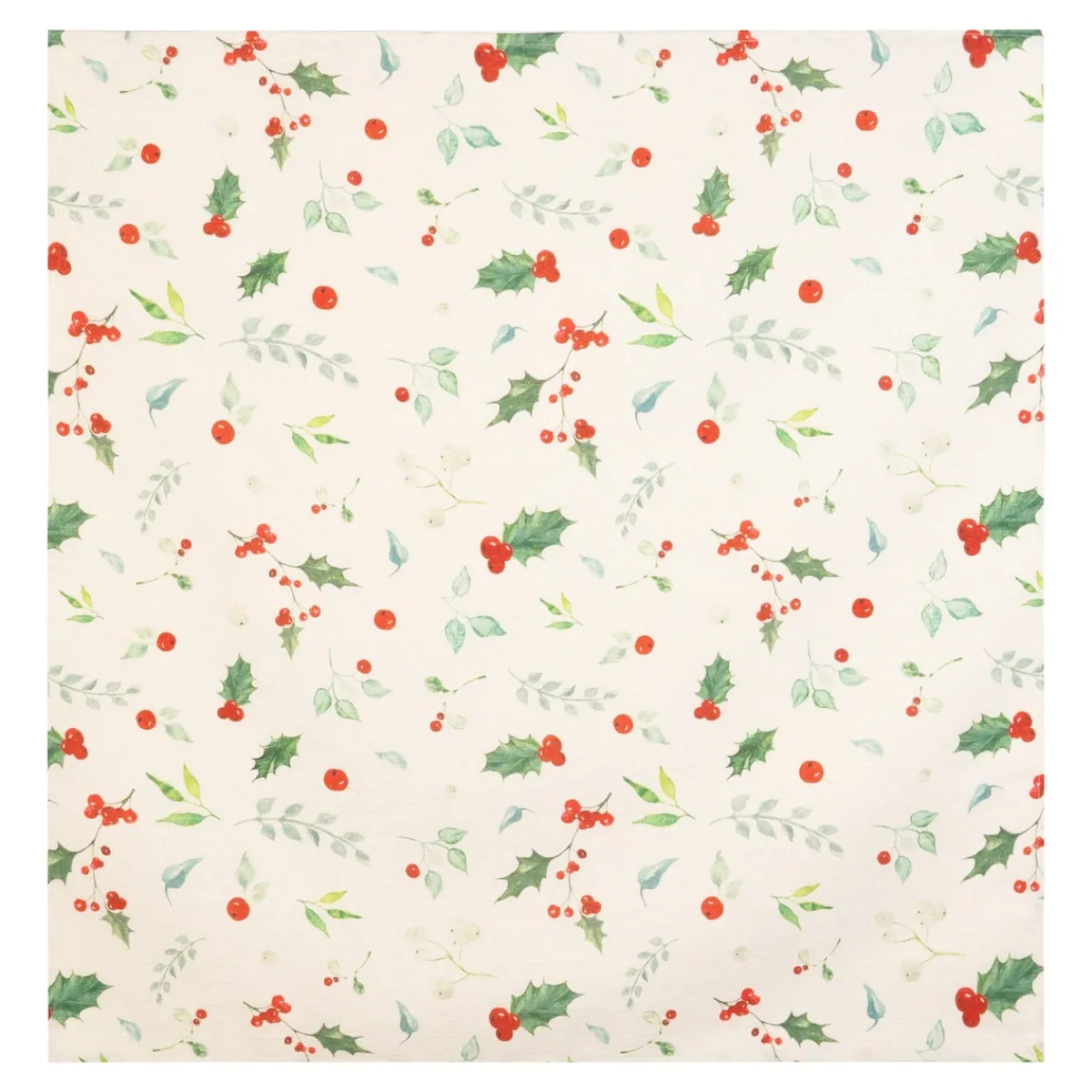 Traditionell sorgt die Stechpalme an Weihnachten für festlichen Glanz. Jetzt sogar als schimmernde Mitteldecke mit Glitzerfäden.