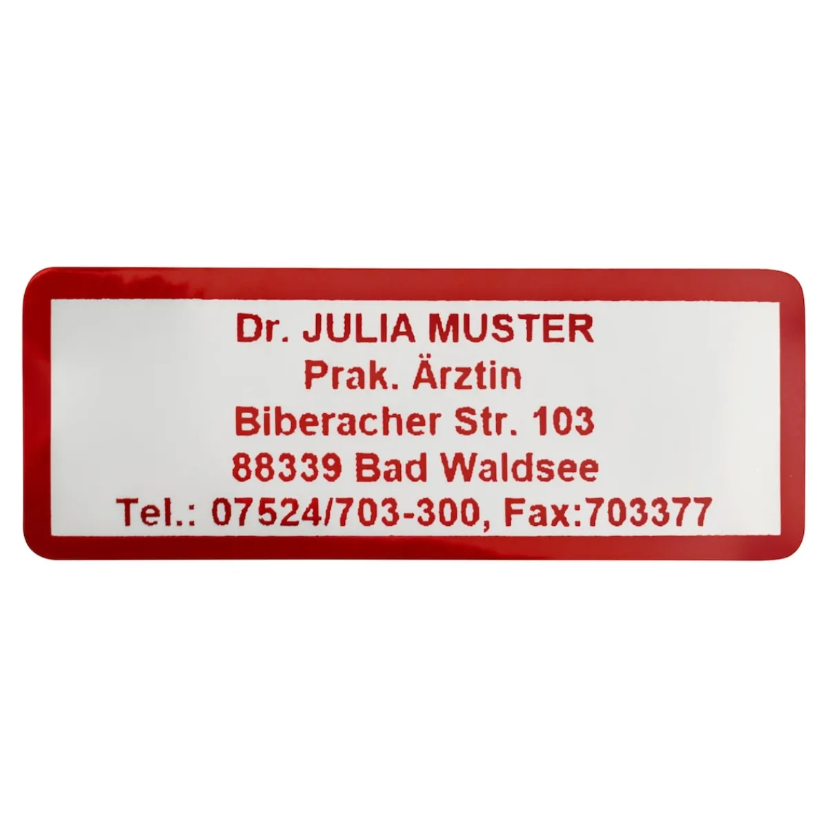 Bei diesen Namensaufklebern haben Sie die Möglichkeit, fünf Zeilen mit bis zu 30 Zeichen pro Zeile drucken zu lassen. Geben Sie hierzu bei der Bestellung einfach Ihren persönlichen Text in die entsprechenden Felder ein. Es stehen zwei Packungsgrößen zur Auswahl: 300 Stück und 1.000 Stück. Außerdem können Sie zwischen verschiedenen Farben (rot, blau, schwarz, silber, gold) wählen.