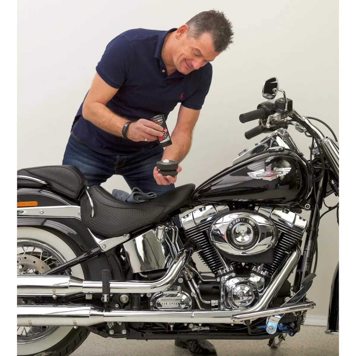 Kleine Kratzer und Lackschäden, wie sie häufig durch Steinschlag entstehen, sehen nicht nur unschön aus, sie sind auch anfällig für Rost. Deshalb sollten sie regelmäßig entfernt werden. Der professionelle Kratzerentferner Platinum 20 sec. ist eine hervorragende Alternative zur teuren und zeitaufwendigen Reparatur in der Werkstatt. Mit ihm lassen sich Lackschäden kinderleicht und sekundenschnell entfernen. Zusätzlich wird der Lack versiegelt und poliert. Das Verfahren ist denkbar einfach. Ein paar Tropfen Platinum 20 sec. werden auf dem mitgelieferten Spezialschwamm verteilt und maximal 20 Sekunden auf die beschädigte Stelle aufgetragen. Dabei lösen sich Lackpartikel aus der Lackoberfläche und werden von der Paste wieder ineinandergefügt. Der Lack bildet eine einheitliche Fläche und wird gleichzeitig poliert und versiegelt.