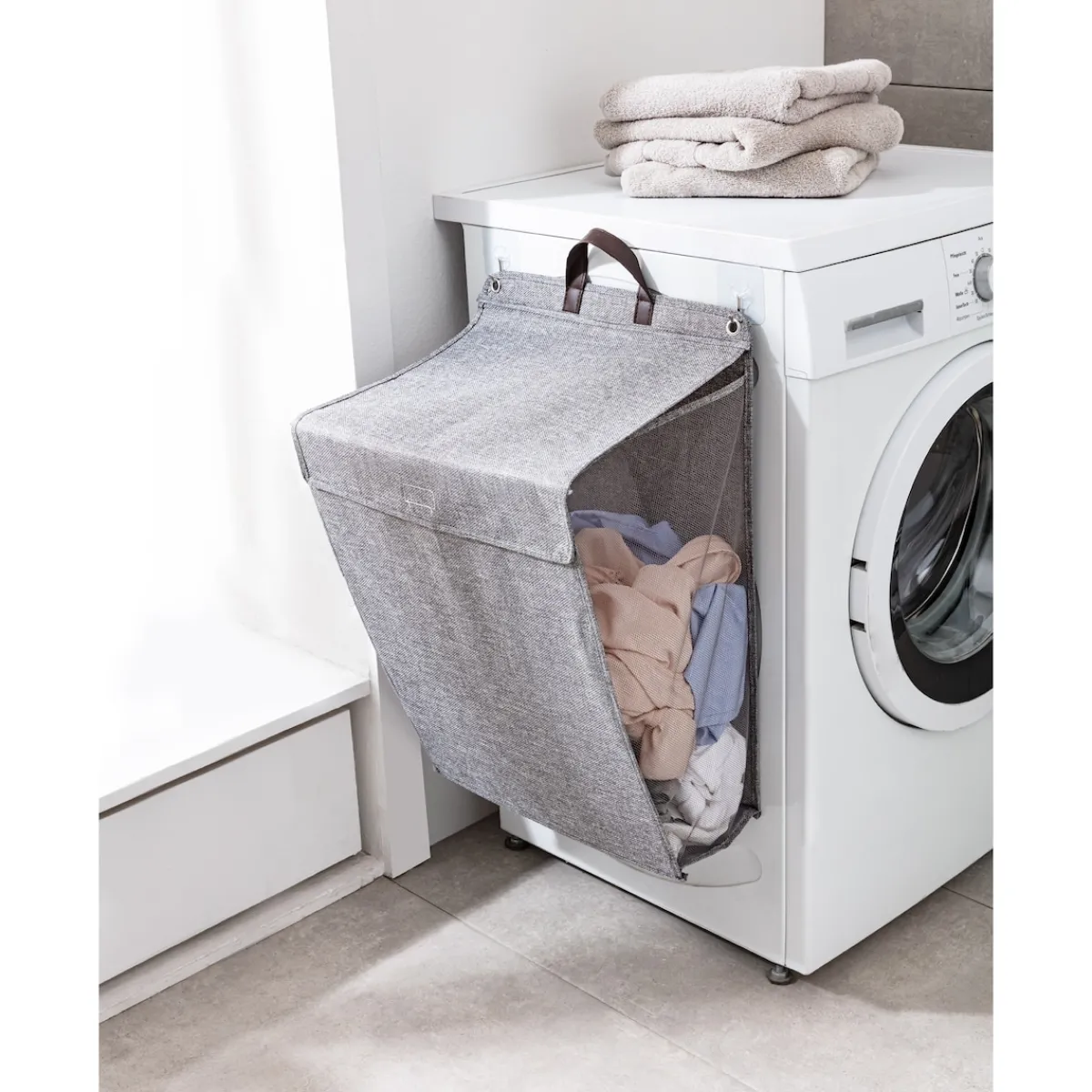 Steht nie im Weg: Dieser Wäschesammler lässt sich ganz einfach an der Wand oder Waschmaschine befestigen. Praktisch: Der Ordnungshelfer kann im Nu abgehängt und mit dem Tragehenkel zur Waschmaschine transportiert werden. Mit großer Öffnung, Deckel und seitlichem Sichtfenster, das Ihnen jederzeit zeigt, wie viel Wäsche sich bereits angesammelt hat.