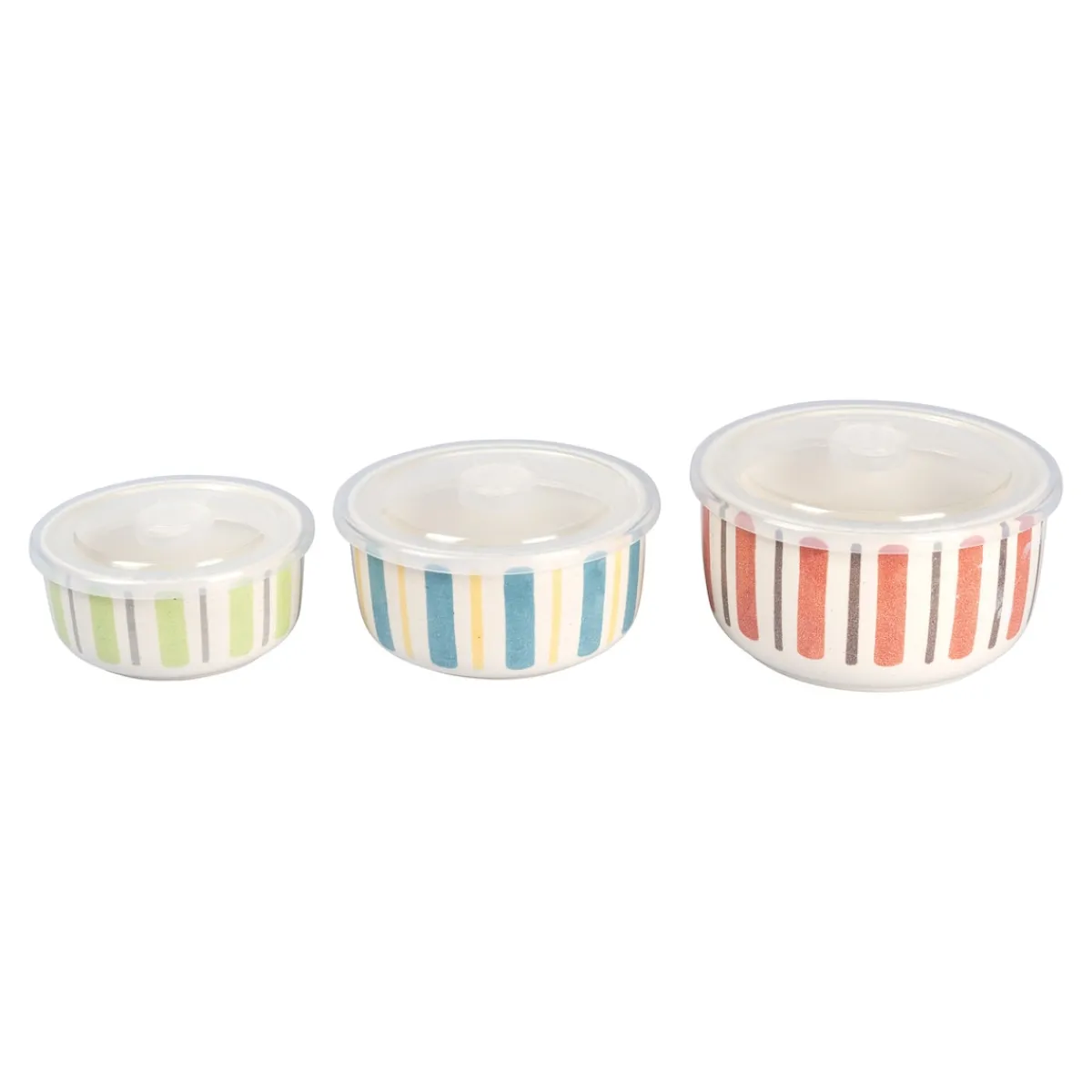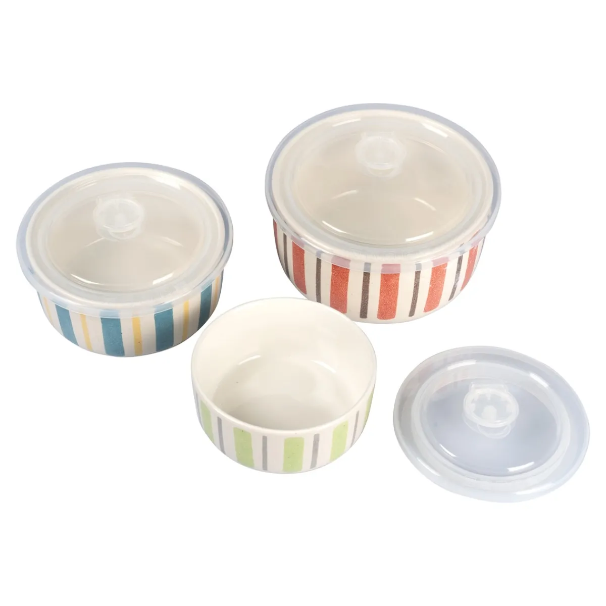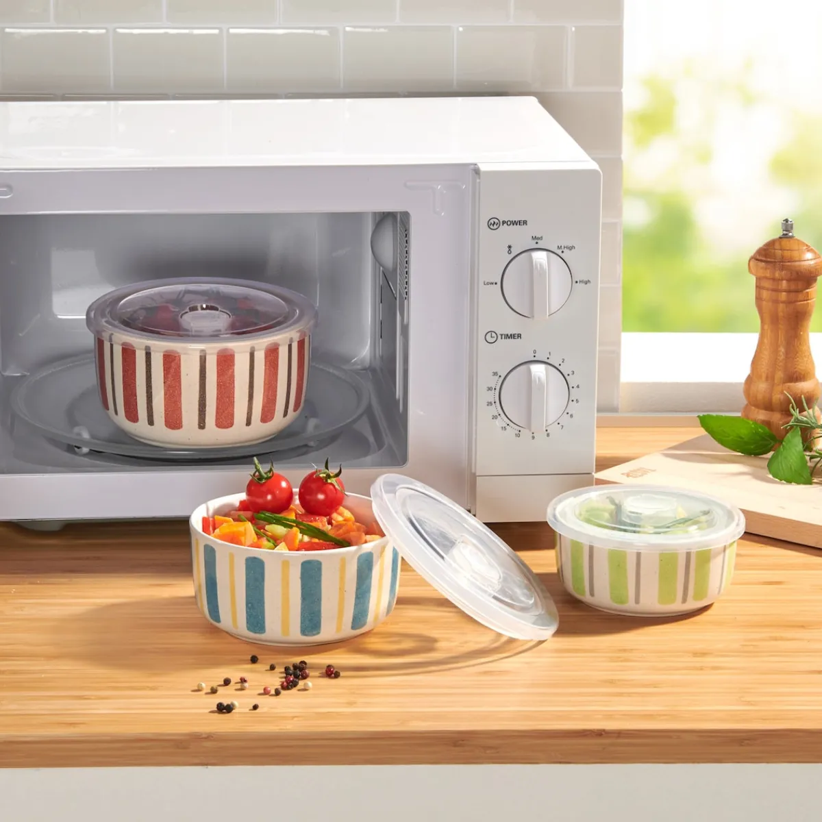 Dieses stilvolle Schüssel-Trio aus Porzellan ist ein wahres Multitalent in Ihrer Küche: Es eignet sich perfekt zum Erwärmen in der Mikrowelle, zum eleganten Servieren am Tisch und zur Aufbewahrung Ihrer Köstlichkeiten. Die Deckel halten den Inhalt frisch und geschmackvoll.