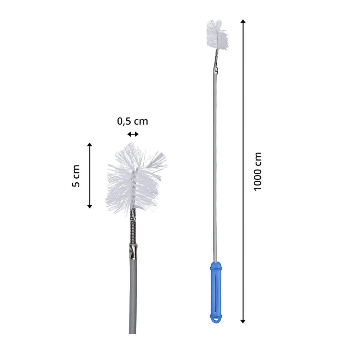Die Reinigungs-Spirale hat eine Länge von 1 m, passt sich jeder Krümmung an und sorgt auch in dunklen Tiefen für klare Verhältnisse. Nur für Röhrensiphons.