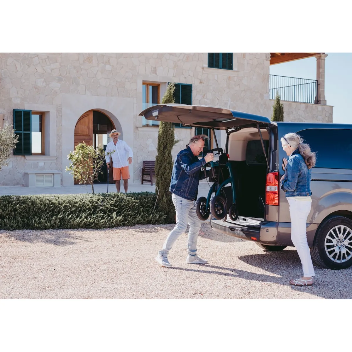 Die stoßdämpfenden Griffe und die ergonomisch geformten Armlehnen bieten höchsten Komfort, sei es beim Gehen oder Schieben. Egal bei welchem Wetter, die wetterfesten Bremsen gewährleisten Ihre Sicherheit. Zudem sind integrierte Reflektoren für gute Sichtbarkeit bei Dunkelheit vorhanden.