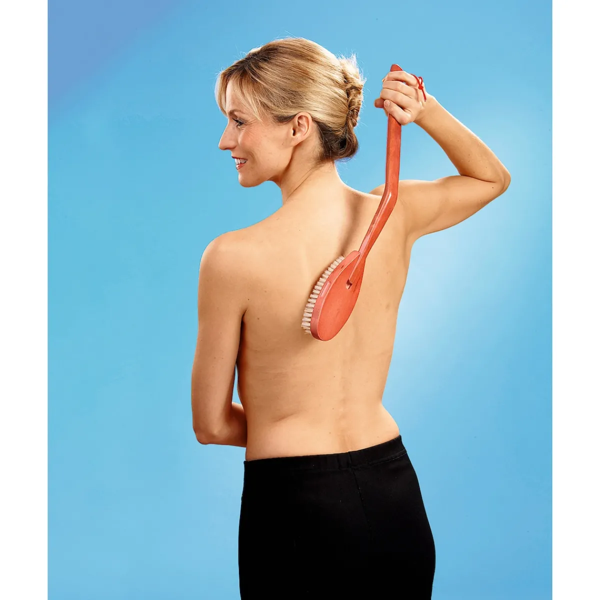 Kaum jemand ist so gelenkig, um an wirklich jede Stelle am Rücken heranzureichen. Vor allem beim Duschen oder wenn es mal juckt, kann das wirklich unangenehm werden. Die Rückenbürste „Spezial“ löst dieses Problem im wahrsten Sinne des Wortes im Handumdrehen. Denn mit ihrem extra langen, körpergerecht geformtem Stiel aus Holz ist sie eine perfekte Armverlängerung – auch für Senioren, Schwangere oder andere Personen mit eingeschränkter Beweglichkeit.