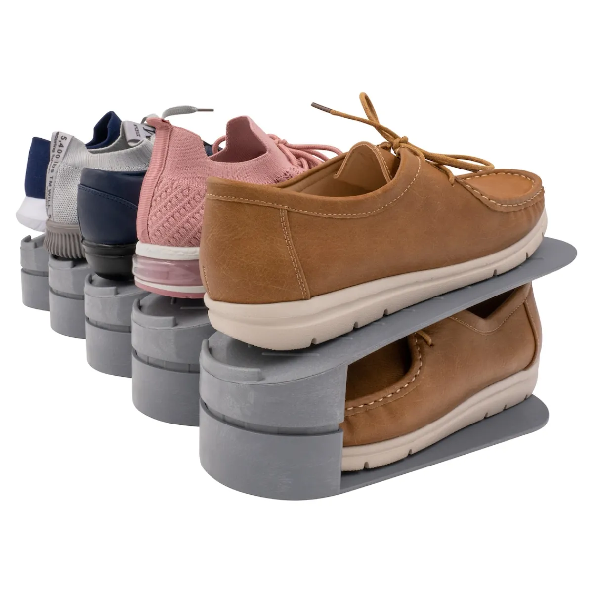 Mit diesen Schuhstaplern sparen Sie nicht nur Platz, sondern sorgen auch ganz einfach dafür, dass Ihre Schuhe sauber bleiben. Die Schuhe werden übereinander gestapelt und sind somit voneinander getrennt. Schmutz kann nicht mehr von den Sohlen auf andere Schuhe fallen und nichts wird mehr eingedrückt.