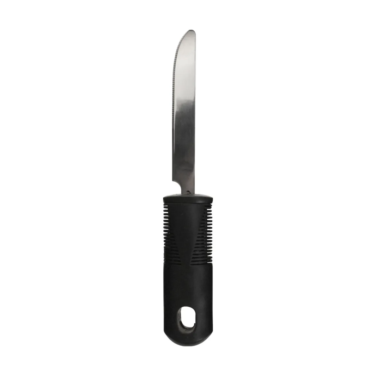 Mit kompakten, ergonomisch geformten Kunststoff-Griffen. Da können auch Rheuma- und Arthritis-Geplagte gut und sicher zugreifen. Spülmaschinengeeignet.