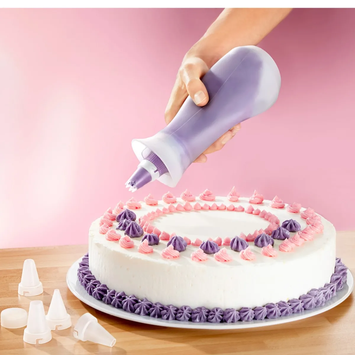 Mit der Dekorierflasche von GENIALO können Sie schnell köstliche Kunstwerke schaffen. Schokocreme, Sahne oder Mousse in die Flasche füllen, den passenden Aufsatz aufschrauben und losgeht der Dekorier-Spaß!