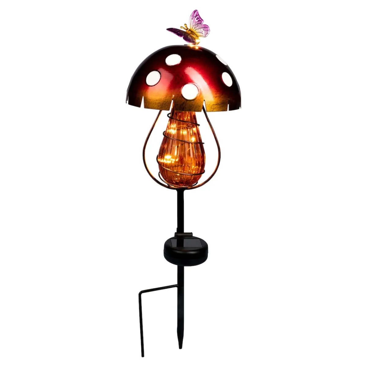 Diesen Pilz muss man nicht lange suchen – er glänzt schon von Weitem. Mit seinem orangenem Leuchtelement ist er auch im Dunkeln ein schöner Blickfang in jedem Garten. Zauberhaftes Detail: Ein Schmetterling, der auf dem Pilz gelandet ist und nachts märchenhaft hell angestrahlt wird. Leichte Befestigung dank Erdspieß.