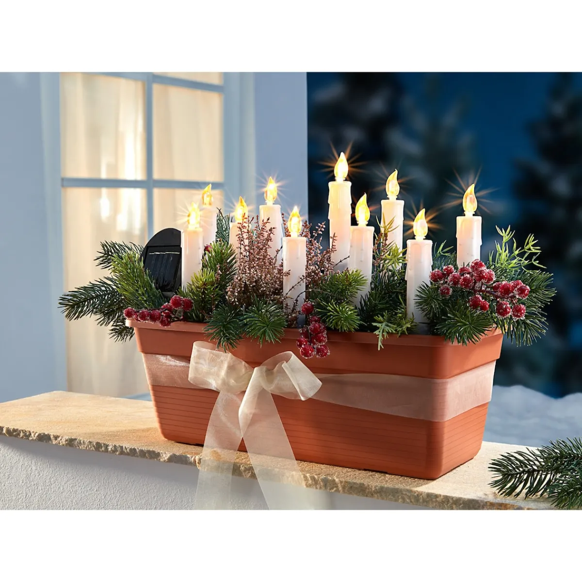 Festlicher Glanz erstrahlt mit warmweißem Licht, sobald diese Solar-Kerzen am Fenster, im Eingangsbereich oder auf der Terrasse die behagliche Weihnachtsbeleuchtung übernehmen! Diese Schmuckstücke sorgen mit ihrem edlen klassischen Design für den himmlischen Hauch von Luxus! Ganz praktisch mit Erdspieß zu befestigen. Mit Ein-/Ausschalter. 1,2V, 600mAH.