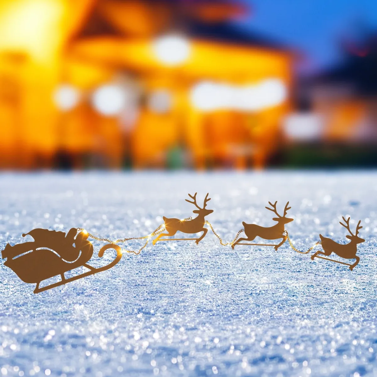 Bringen Sie festlichen Glanz in Ihren Garten! Der LED-Gartenstecker zeigt den Weihnachtsmann im Schlitten, gezogen von drei Rentieren. Die LEDs tauchen das Motiv in stimmungsvolles Licht, während das rostfarbene Design perfekt in die winterliche Natur passt. Ein echter Hingucker für Ihre Außen-Deko!