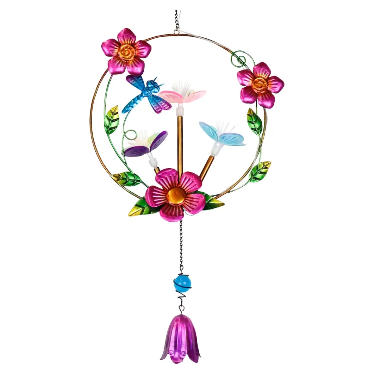 Die Solar-LED-Hängedeko „Blütenzauber“ bringt ein stimmungsvolles Lichtspiel in Ihren Außenbereich. Tagsüber reflektieren die filigranen Blüten aus Metall das Sonnenlicht und sorgen für dekorative Glanzeffekte. Sobald es dunkel wird, schalten sich die LEDs automatisch ein und wechseln sanft ihre Farben. Der integrierte Li-Ion-Akku speichert die Energie des Tages und lässt die Leuchte bis zu 8 Stunden erstrahlen. Aus hochwertigen Materialien gefertigt, eignet sich die Hängedeko ideal für Balkon, Terrasse oder Garten.