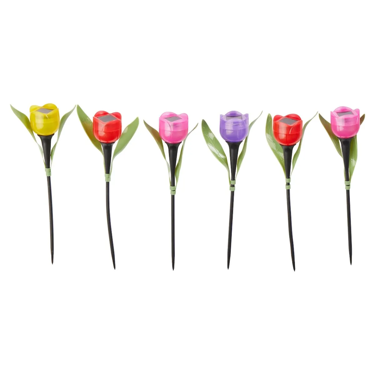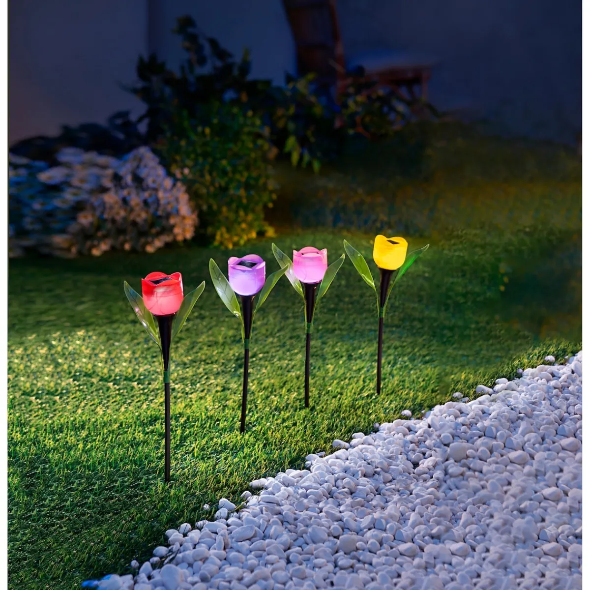 Diese 6 Schönheiten kommen wie gerufen, wenn Sie sich das ganze Jahr über an einer bunten Tulpenpracht erfreuen wollen! Die bezaubernde Blumendekoration erstrahlt bei Dämmerung und Nacht in den Farben Gelb, Rot, Pink und Lila – und das ganz umweltfreundlich, dank Solarbetrieb!