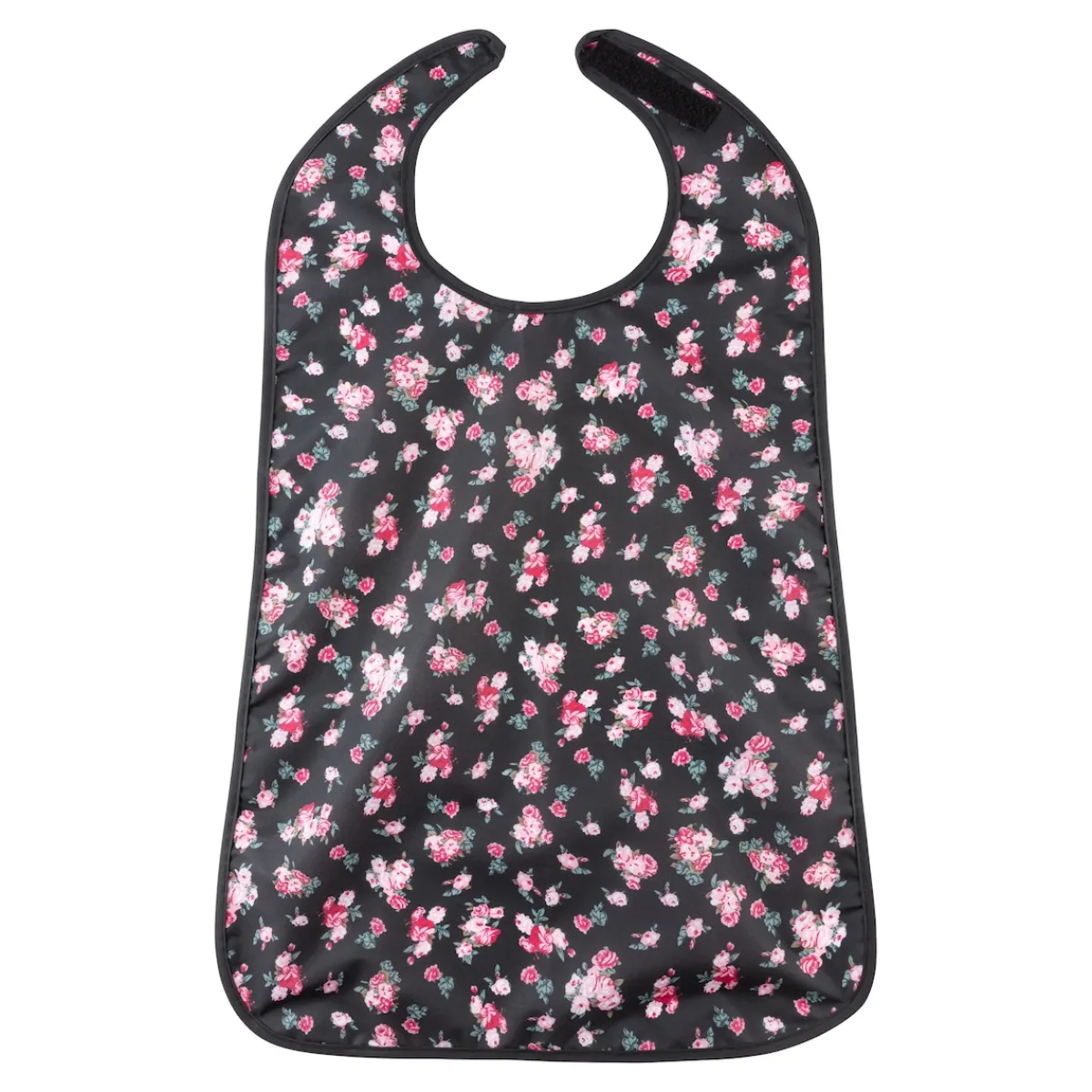 Mit dieser extra großen, flüssigkeitsabweisenden Speiseschürze können Sie die Mahlzeiten ganz entspannt genießen, denn Ihre Kleidung ist im Sitzen und im Liegen vollständig vor Flecken geschützt. Praktisch: das hübsche Blumenmuster kaschiert zuverlässig kleine „Klecker-Unfälle“! Mit Klettverschluss im Nacken.