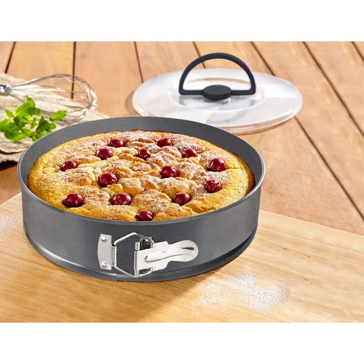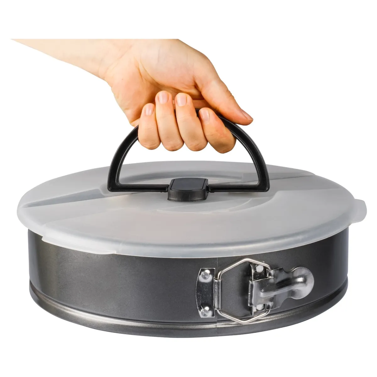 Unsicheres Umstürzen war gestern: Die Springform liefert dank Antihaftbeschichtung nicht nur perfekte Backergebnisse, sondern kann auch direkt in der Springform transportiert werden – Deckel drauf und los geht’s zum nächsten Kaffeekränzchen! Mit praktischem Tragegriff.