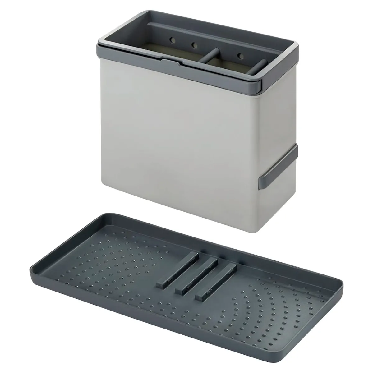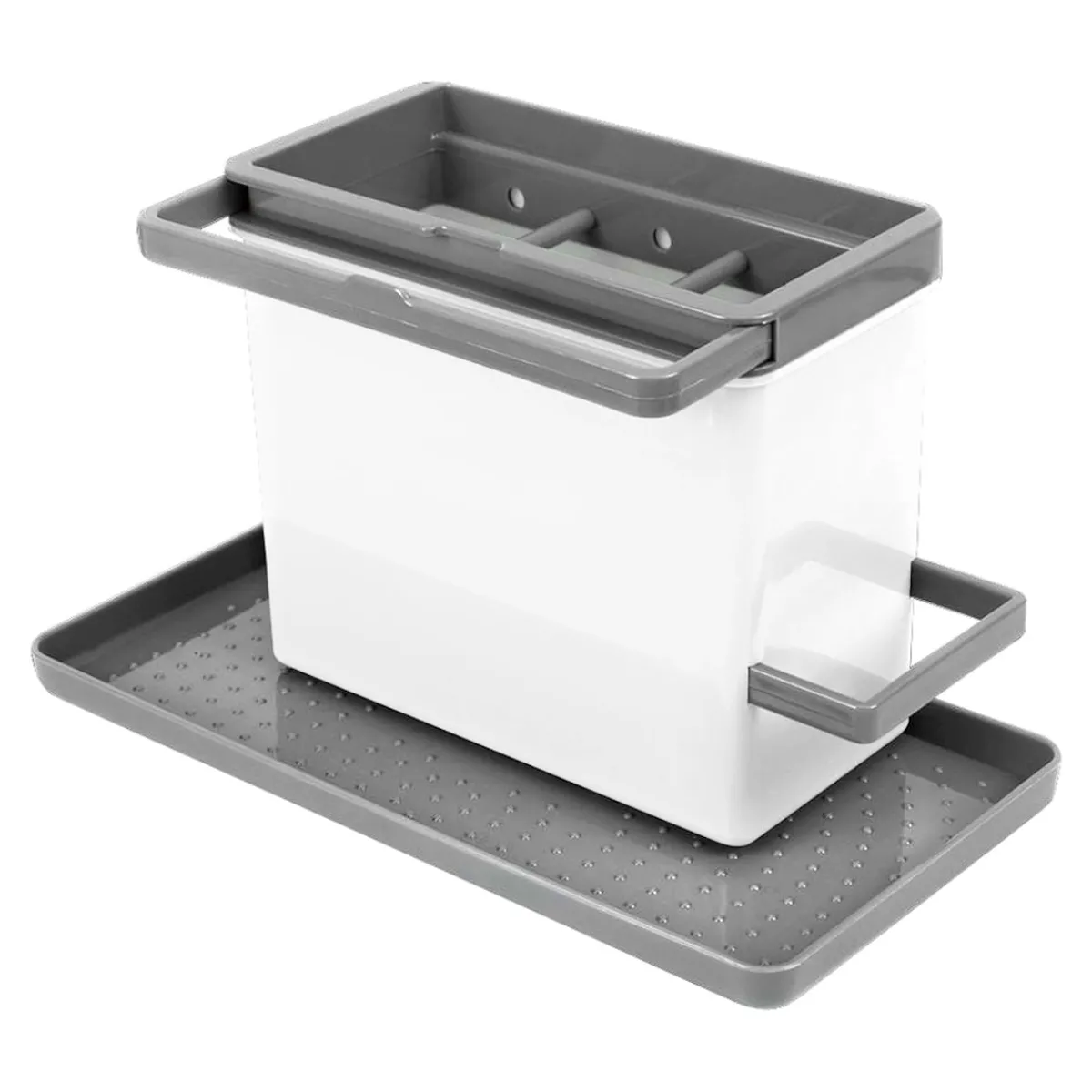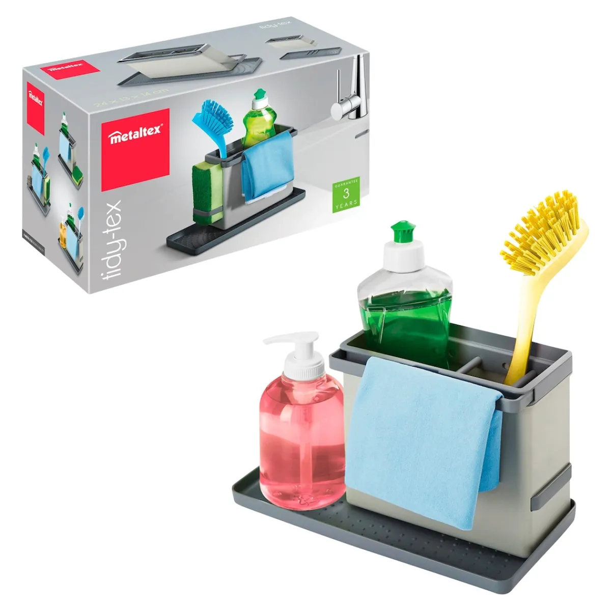 Spülbürste, Schwamm und Spülmittel finden mit diesem Organizer von METALTEX immer ihren festen Platz in der Küche. Der Behälter mit dem Abtropfkorb für das Besteck lässt sich in 5 verschiedenen Positionen auf dem Anti-Rutsch-Tablett befestigen. Inkl. 2 ausziehbare Bügel für Tücher und Schwämme.