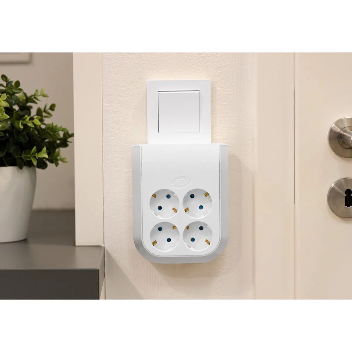 Der praktische Steckdosenadapter erweitert Ihre übliche Steckdose kompakt und leicht zugänglich um 2 Plätze – so können Sie mehrere Elektrogeräte gleichzeitig mit Strom versorgen. Und das vollkommen sicher: Erst wenn der Adapter fest an die Wand geschraubt ist, wird die Stromzufuhr der Steckdosen aktiviert.