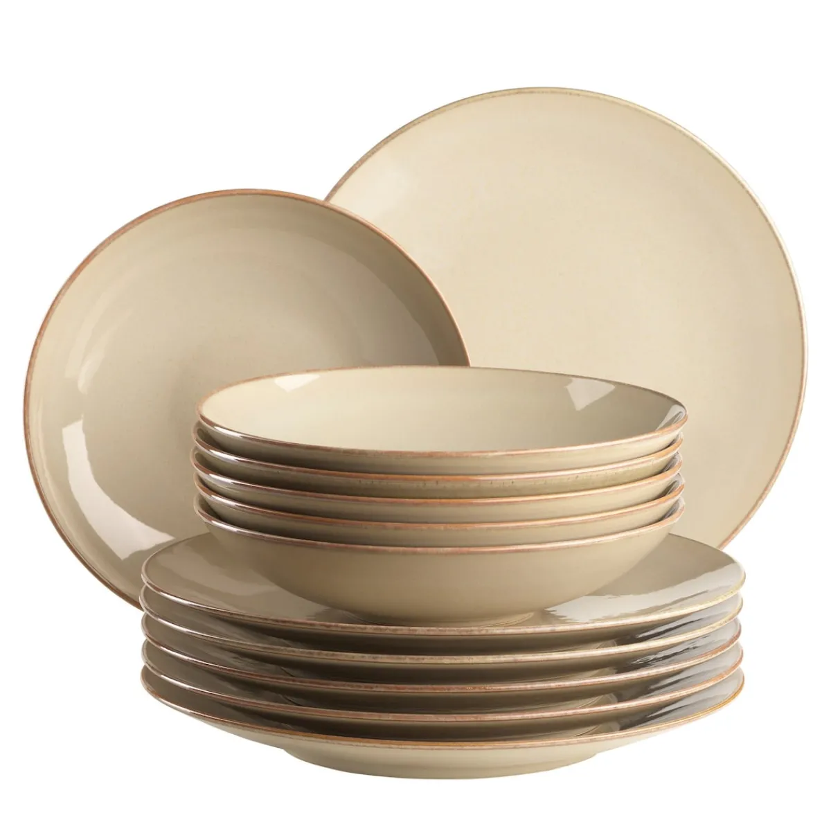 Dieses 12-teilige Essgeschirr Set für 6 Personen aus hochwertigem Keramik besteht aus