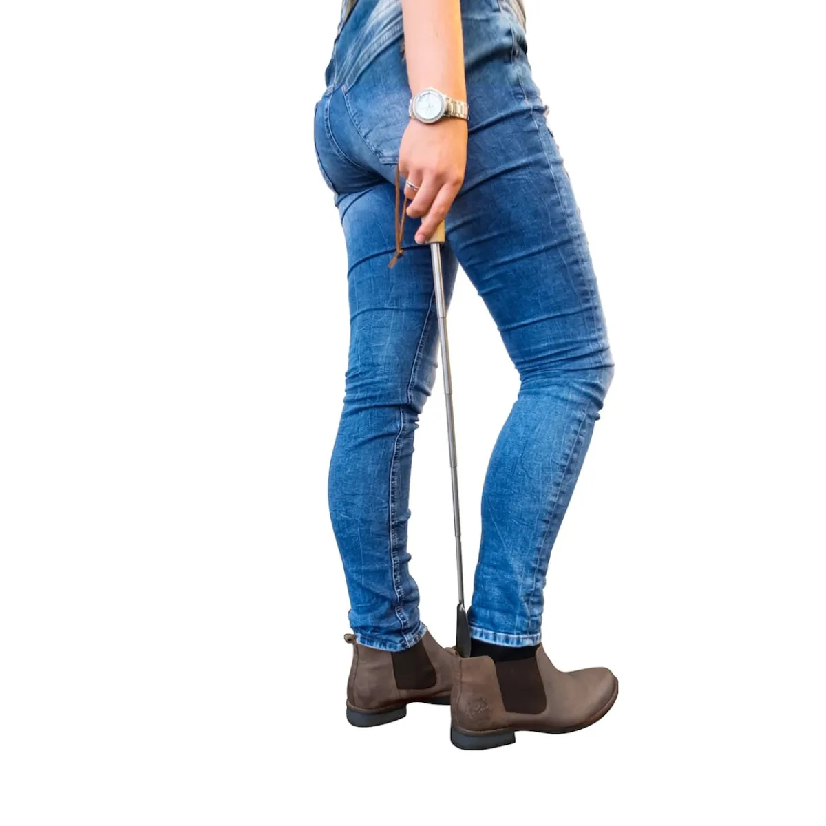 Schuhe anziehen – bequem, ohne Bücken. Mit Lederschlaufe.