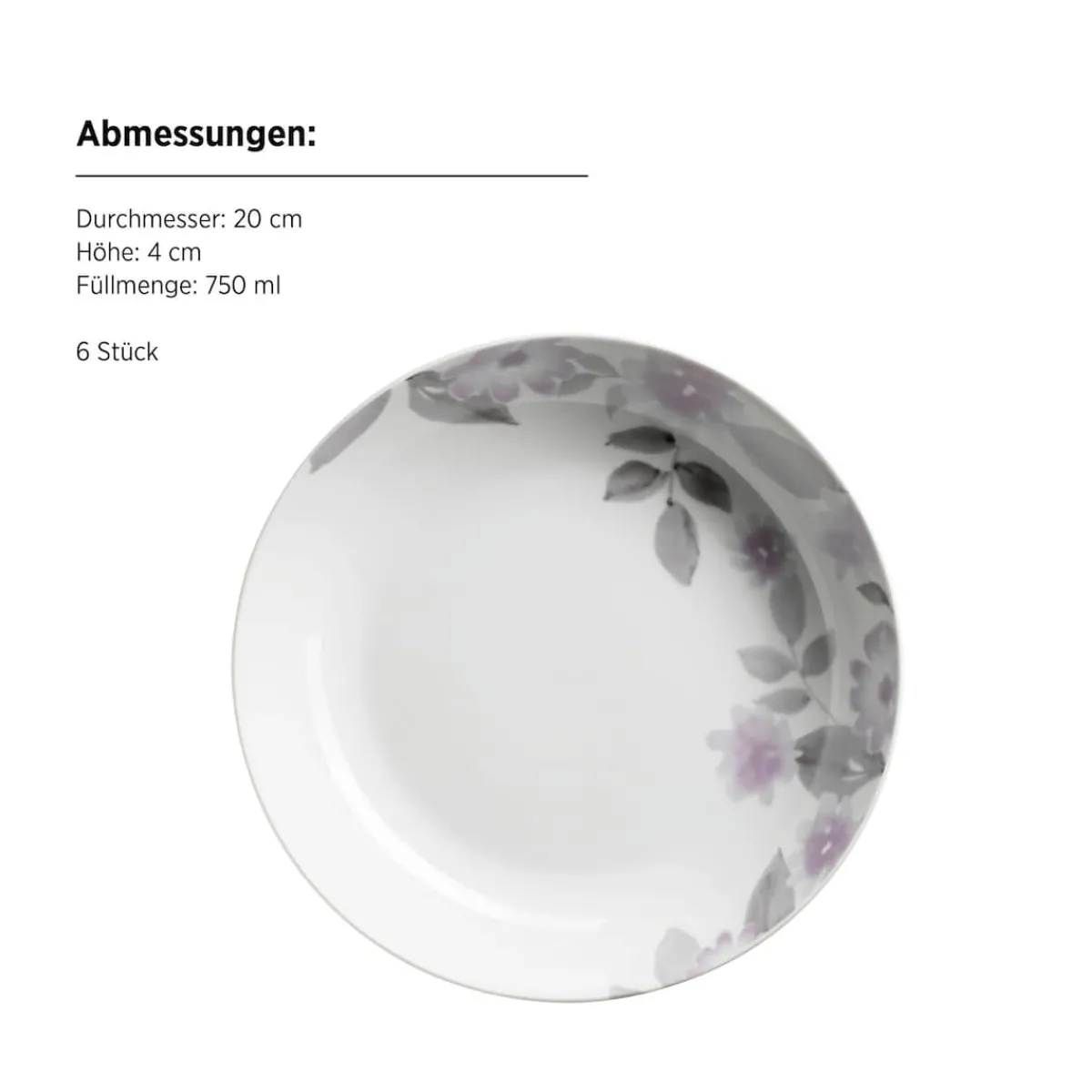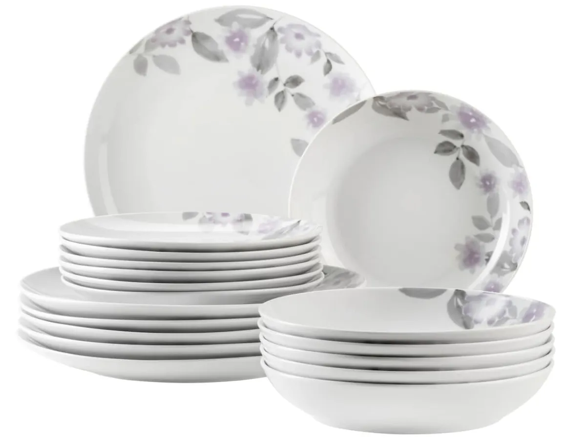 Bringen Sie frischen Blumenzauber auf Ihren Tisch – mit dem MÄSER Tellerset „Sono“ 18-teilig. Dieses stilvolle Geschirrset für 6 Personen besteht aus je 6 flachen Tellern, Suppentellern und Desserttellern. Das moderne Blumendekor in Flieder- und Grautönen auf edlem, weißem Porzellan wirkt romantisch und zugleich zeitgemäß.