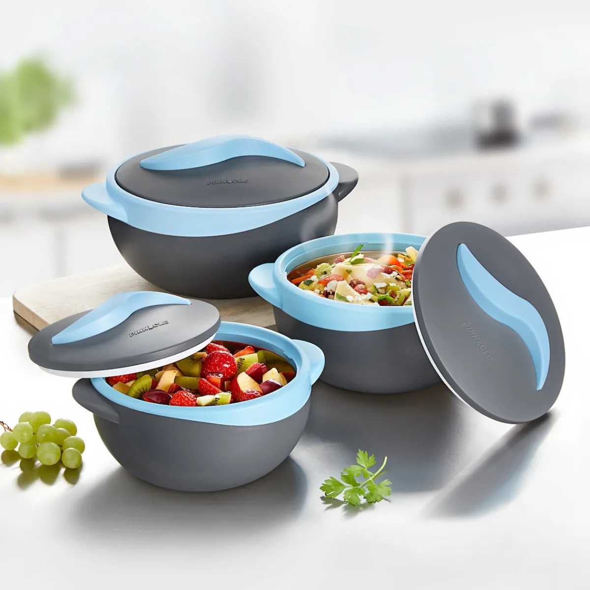 Sie haben frisch gekocht, möchten aber nicht sofort essen, sondern warten, bis Ihre Liebsten da sind? Oder wollen Sie Reste vom Mittagessen für den Abend aufbewahren? Für Situationen wie diese sind die hochwertigen Thermoschüsseln perfekt geeignet: Die innen aus Edelstahl und außen aus mattiertem Kunststoff bestehenden Gefäße lassen sich mit Suppen, Eintöpfen und anderen warmen Speisen befüllen und mittels Drehverschluss-Deckel dicht verschließen. So halten die formschönen Schüsseln Ihre Speisen über Stunden warm und ein erneutes Aufwärmen, das die Konsistenz und den Vitamingehalt der Lebensmittel beeinträchtigen würde, ist in den meisten Fällen nicht nötig.
