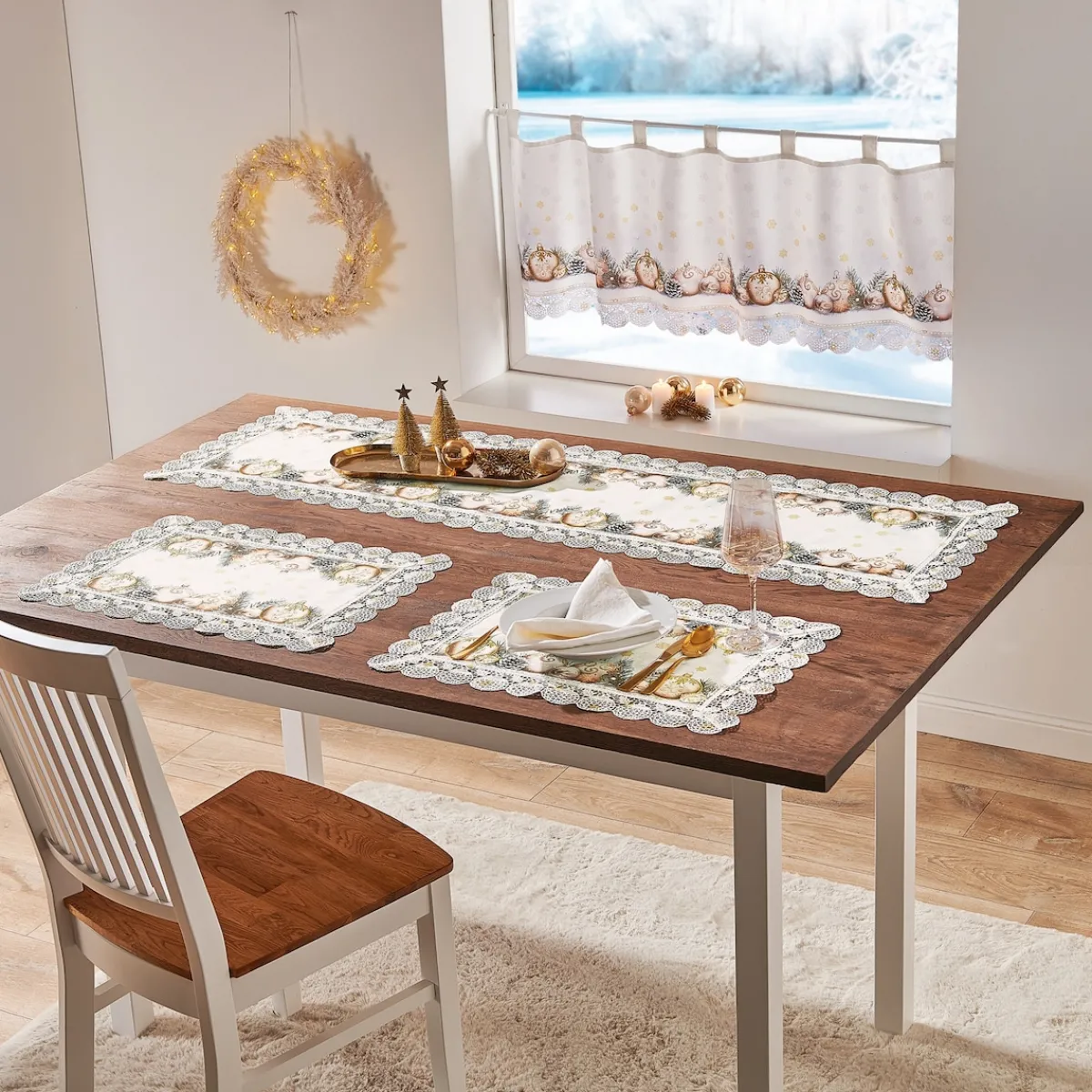 Abmessungen: Tischläufer: (LxB) 140x40cm, Platzset, 2 Stück: (LxB) 50×35 cm