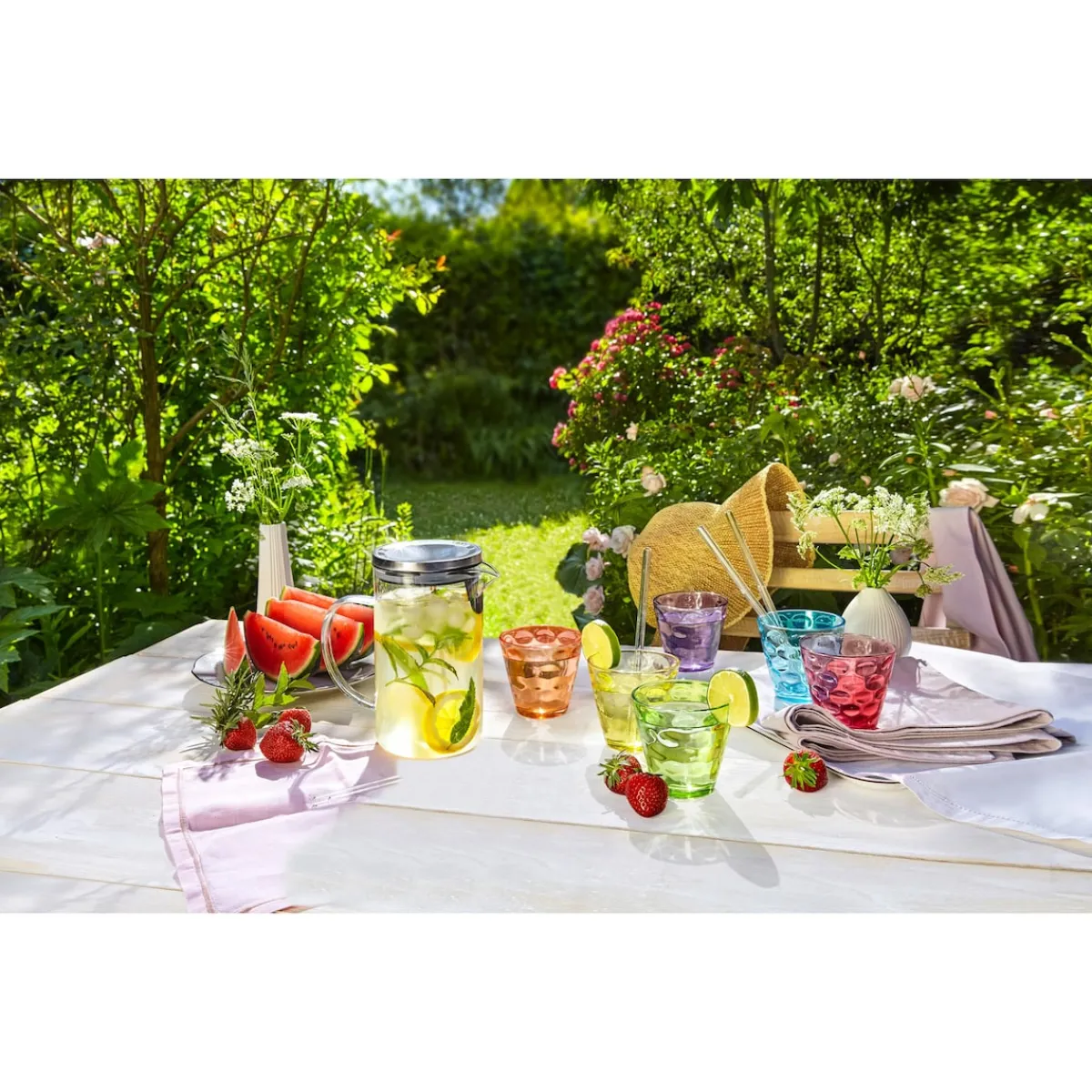 Die Party kann beginnen! Diese Trinkgläser bringen mit ihren wunderschönen Regenbogenfarben sommerlich bunte Abwechslung auf Ihren Garten- oder Küchentisch. Praktisch: Jeder Gast findet sein Glas.
