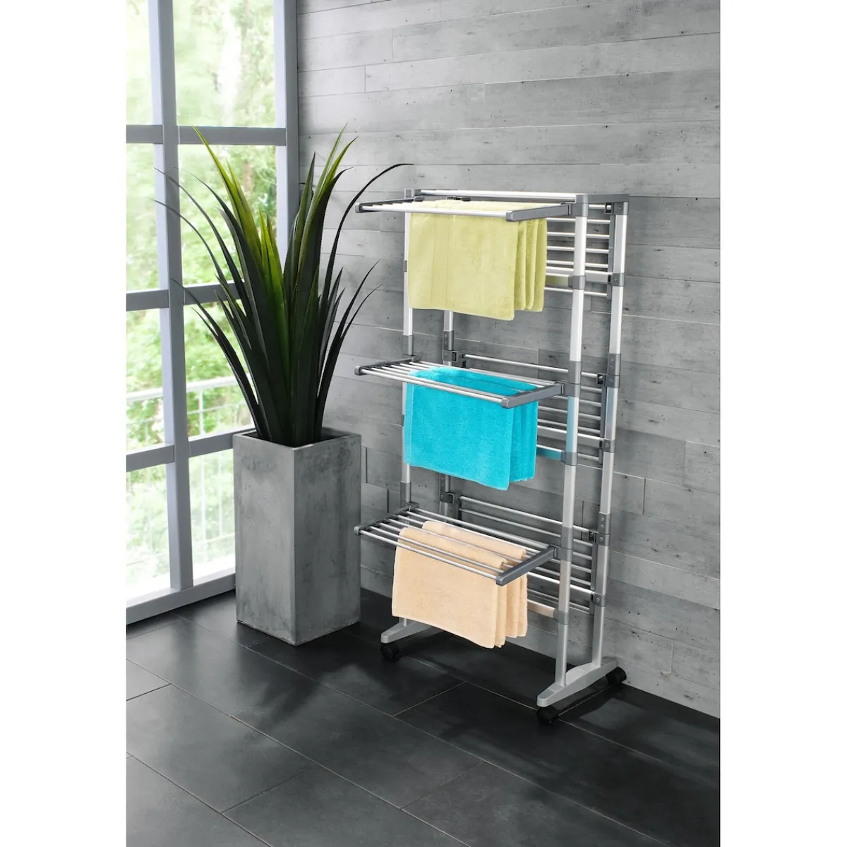 Der stabile Wäschetrockner lässt sich leicht überall hinrollen und kann für schnelleres Trocknen auch mal direkt vor einen Heizkörper geschoben werden.