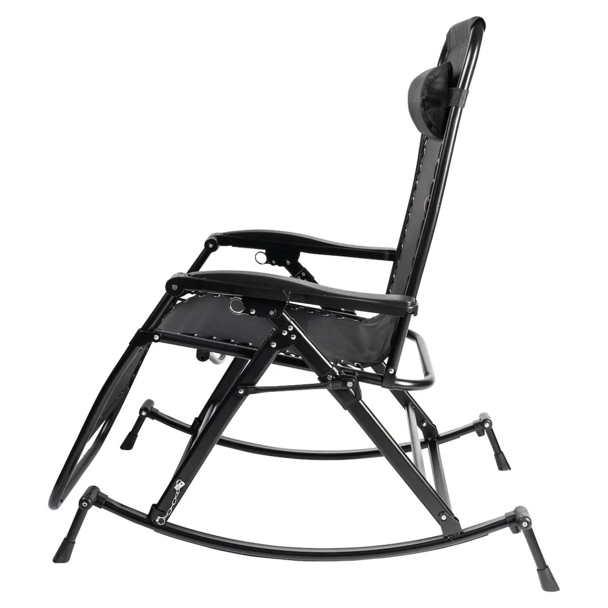 Gönnen Sie sich pure Erholung im eigenen Garten: Ruck, zuck ist der Schaukelstuhl mit höhenverstellbarem Kopfkissen aufgestellt, und Sie können bei einem Buch das gute Gefühl einer entspannten Haltung von Kopf bis Fuß genießen. Dank ausklappbarer Stellfüße wird der vielseitige Stuhl im Nu sogar zur Liege.