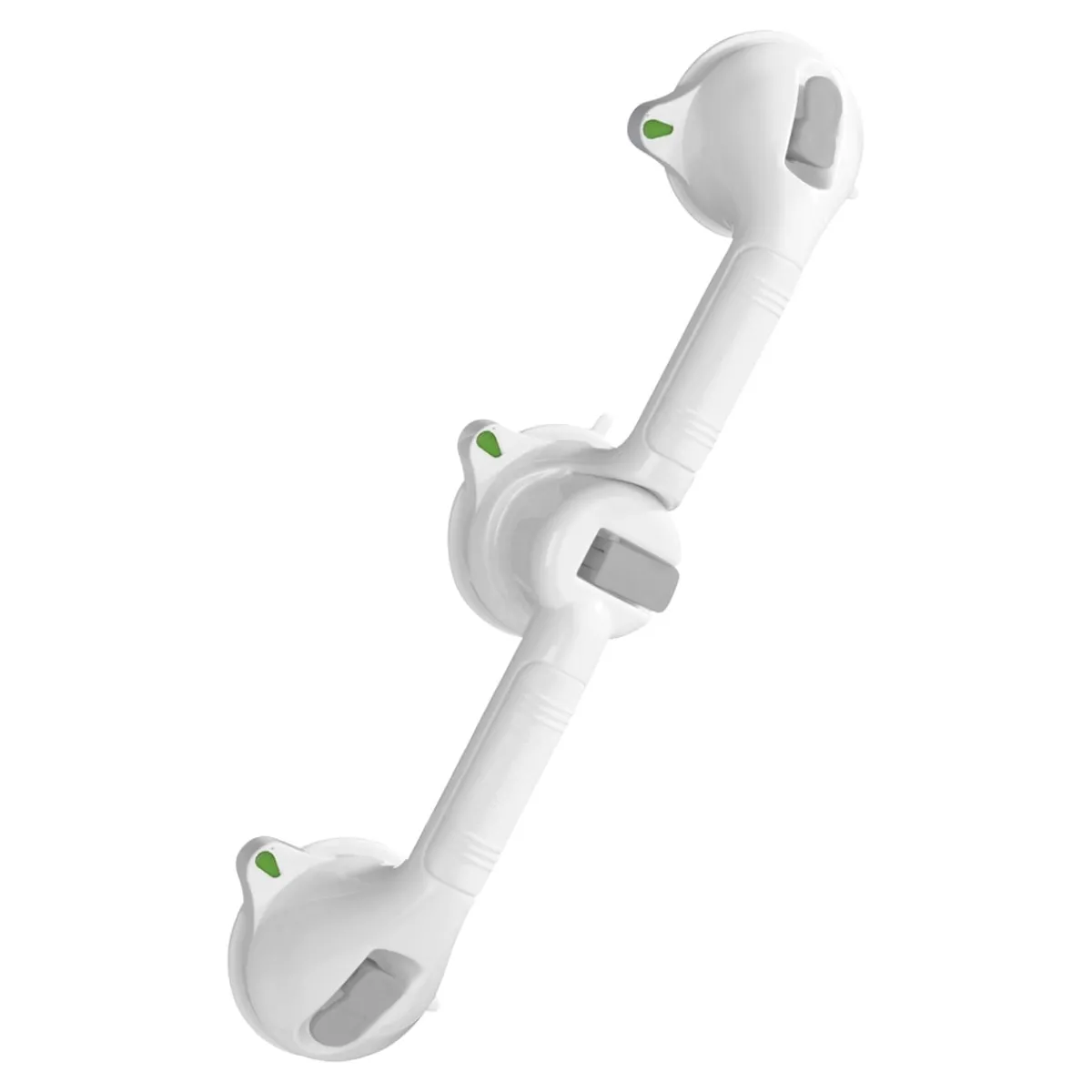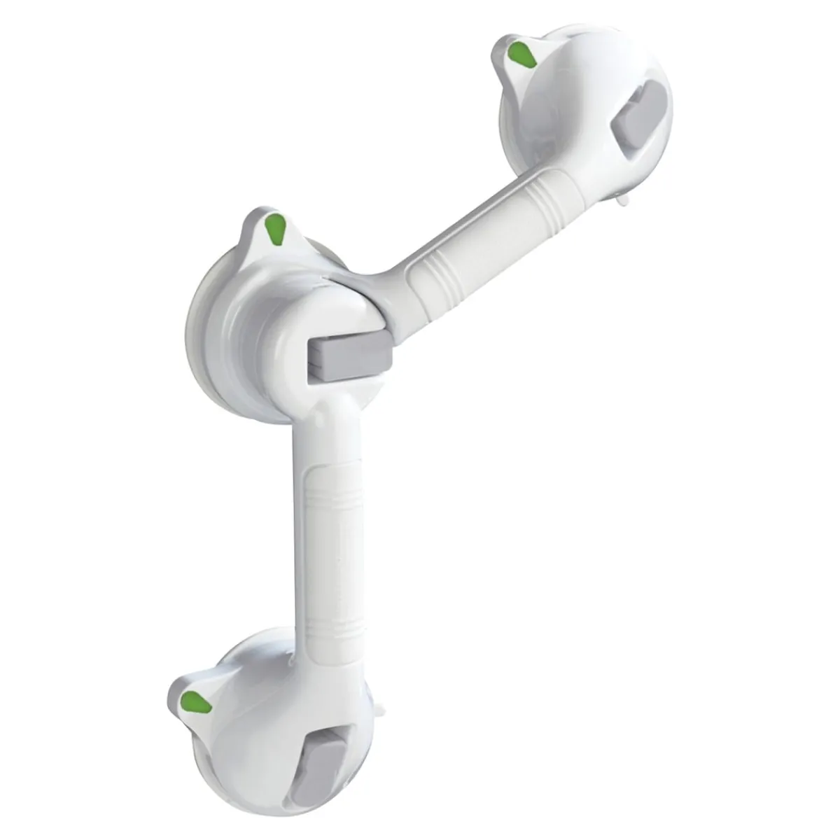 Dieser Wandgriff sorgt für mehr Sicherheit beim Duschen oder Baden. Dank Saugtellern haftet er zuverlässig auf glatten Flächen, das Ampel-System zeigt Ihnen an, ob der Griff noch über sichere Haftung verfügt (Grün) oder ob der Sauger neu angesetzt werden muss (Rot). Der obere Arm lässt sich flexibel bis zu 180° einstellen. Für ein sicheres Gefühl – Tag für Tag!