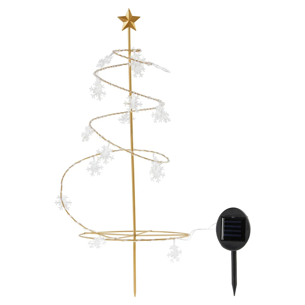 Freuen Sie sich abends über das eingefangene Licht, das die Eissterne dieser spiralförmigen Gartendeko weit sichtbar zum Leuchten bringt!