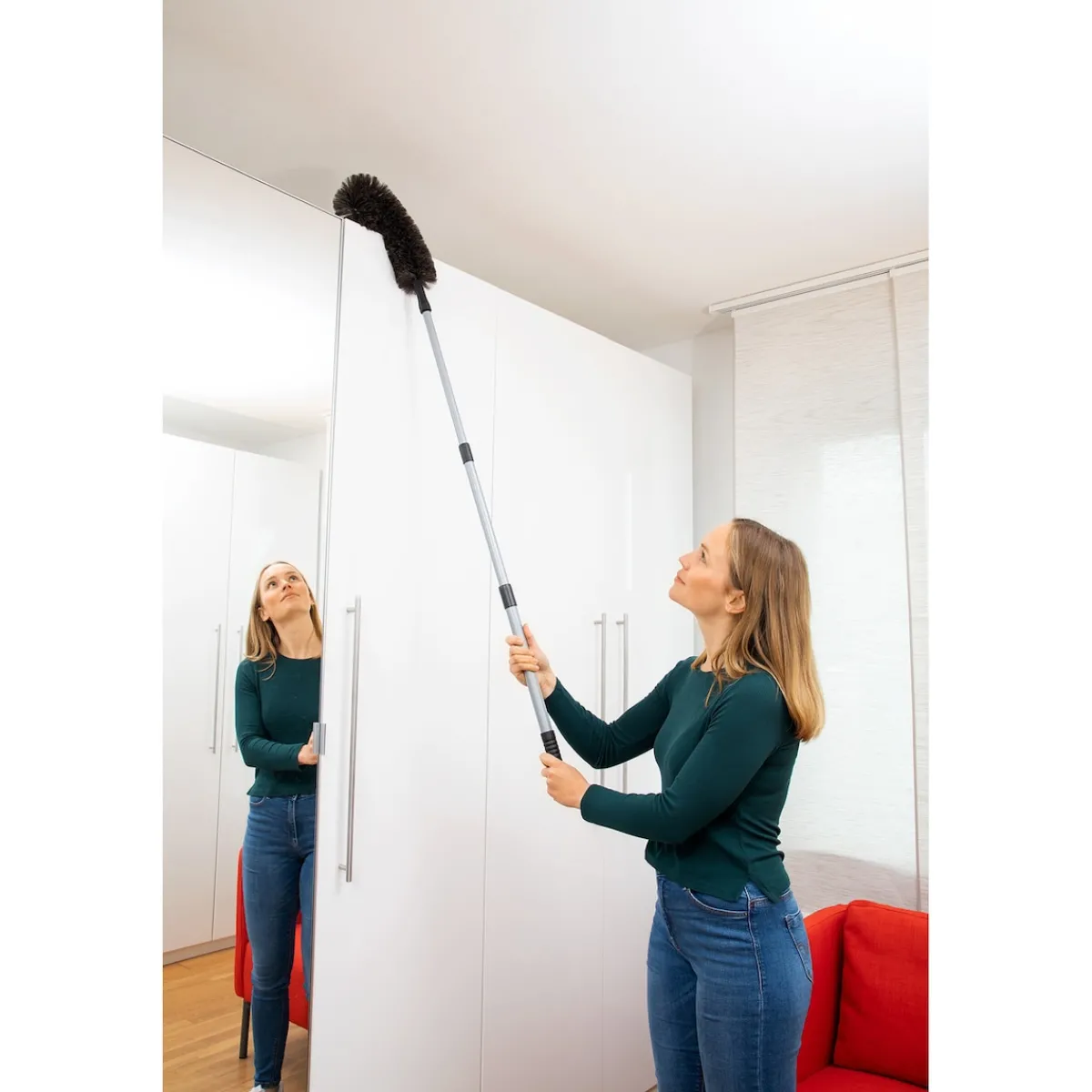 Mit dem Ziegenhaar-Staubwedel reinigen Sie selbst empfindlichste Oberflächen ohne Kratzer oder Aufwirbeln von Staub. Dank seiner einzigartigen Form erreichen Sie mühelos schwer zugängliche Ecken. Der ultraleichte, verstellbare Teleskopstiel sorgt für ermüdungsfreies Arbeiten – auch bei großen Höhen.