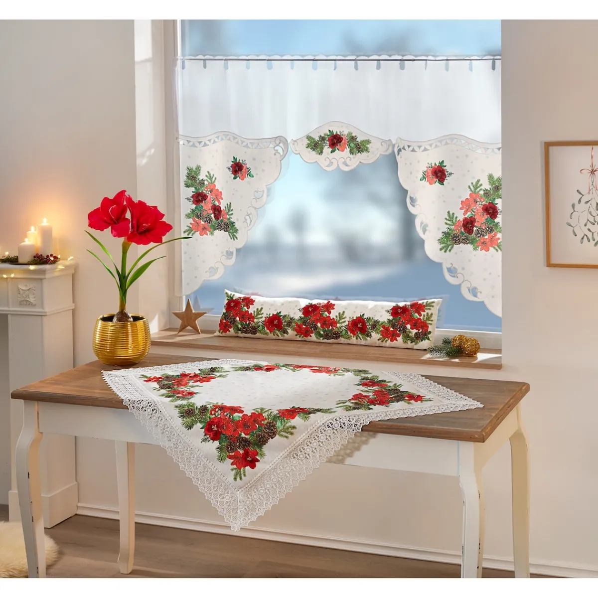 Mit ihren imposanten Blüten ist die Amaryllis ein beliebtes Weihnachtssymbol. Lassen Sie in diesem Sinne auch Ihr Zuhause gebührend weihnachtlich aufblühen: Halb bestickt, halb bedruckt veredelt sie als Zugluftstopper Ihre Räume angenehm warm.