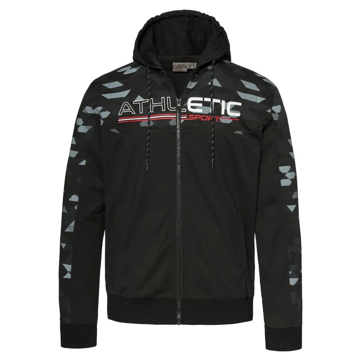 Machen Sie sich’s gemütlich – in diesem bequemen Freizeitanzug! Seine Jacke punktet mit durchgehendem Reißverschluss, sportlichem Print auf Brusthöhe, Kapuze sowie 2 Einschubtaschen. Diese finden sich auch seitlich in der Hose, die Ihnen dank elastischem Gummizug, Innenkordel und offenem Beinabschluss einen hohenTragekomfort bietet.
