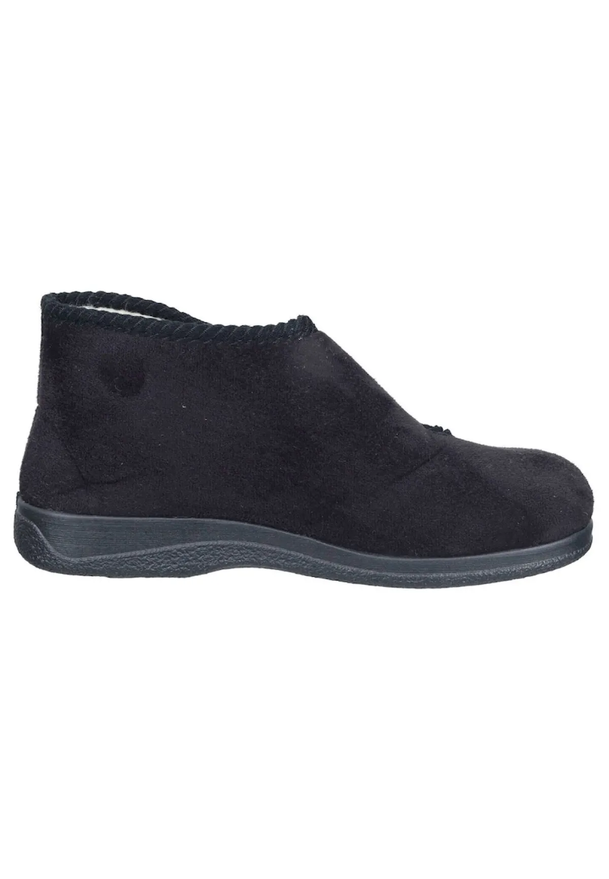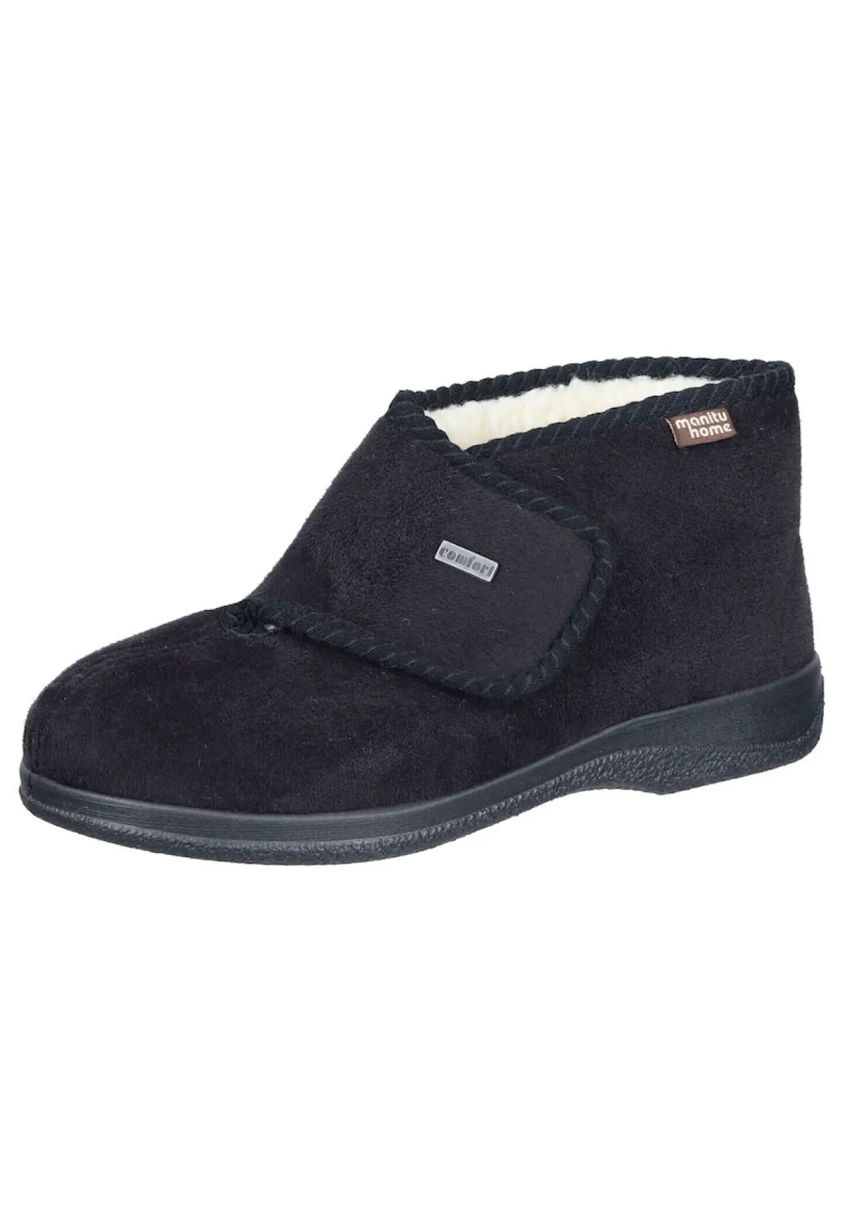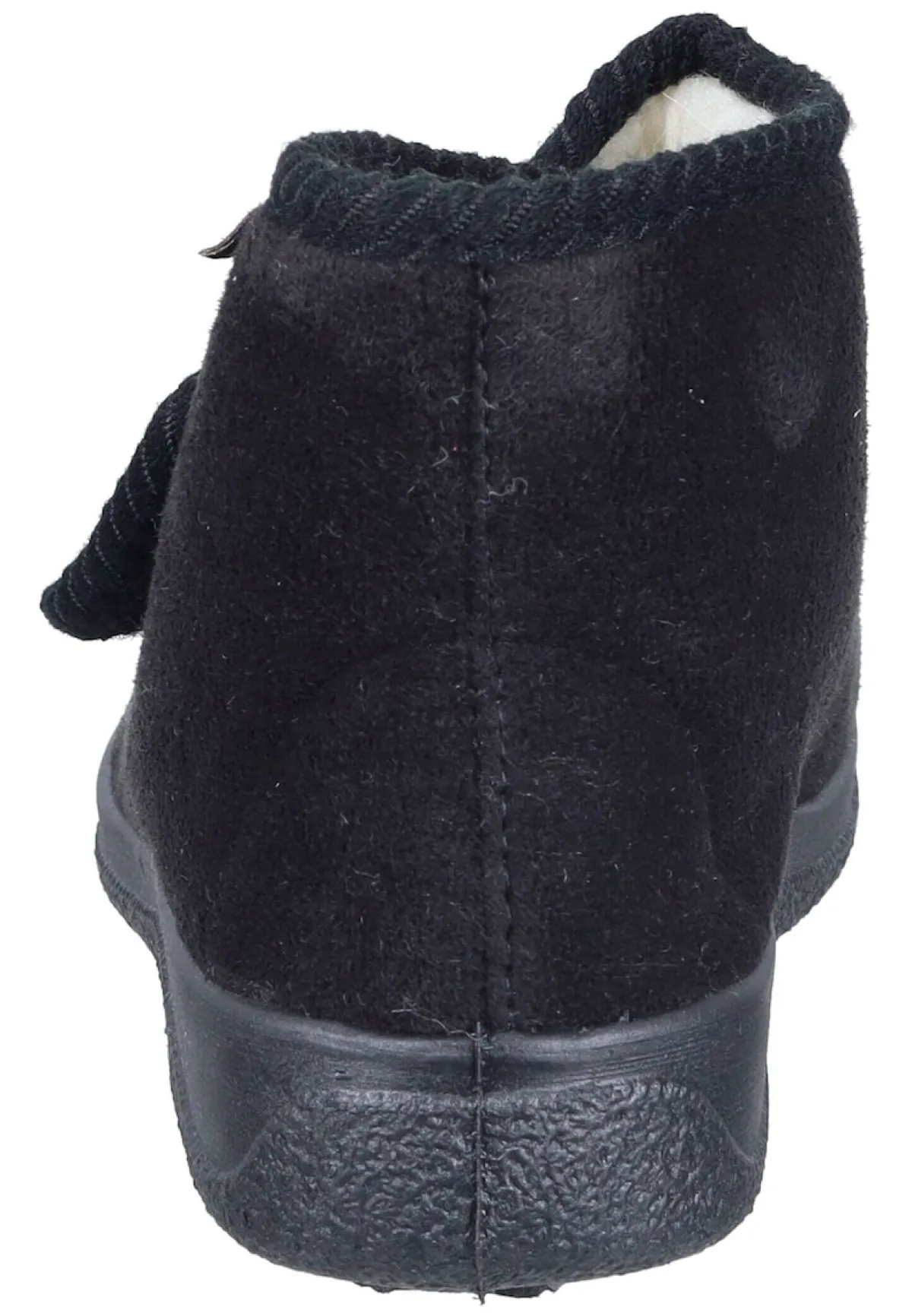 Bei diesem Produkt handelt es sich um einen Schuh aus der Kategorie Klassische Hausschuhe für Herren. Als Obermaterial wurde Velouran verwendet und im inneren Bereich des Schuhs wurde Schurwollfutter und Schurwolldecksohle verarbeitet. Die Schuhweite dieses Artikels ist normal und somit standard. Als Verschlussart wurde Klettverschluss gewählt und die PVC-Sohle rundet das Produkt ab. Der Artikel fällt normal aus, bitte die gewohnte Größe bestellen. – Schuhweite: normal –
