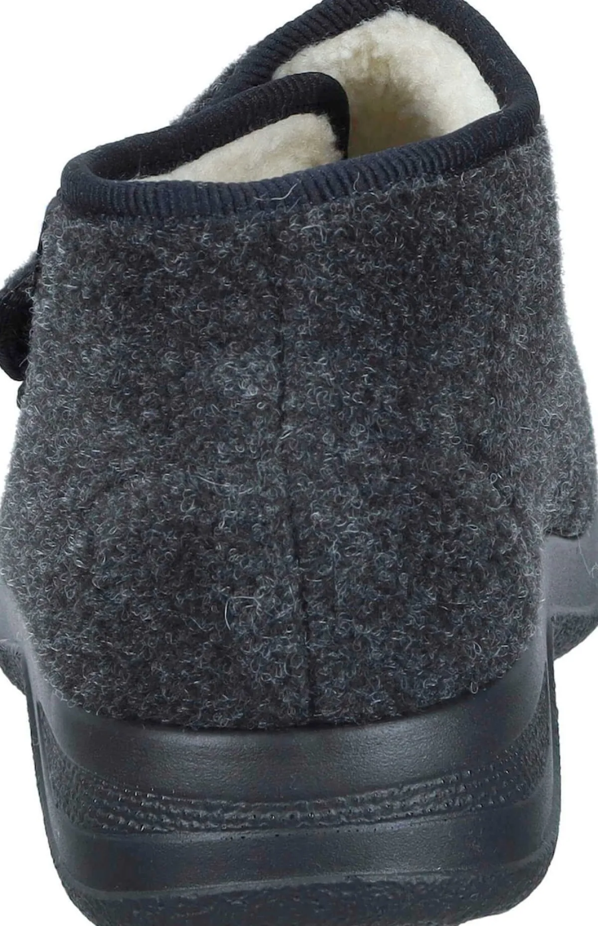 Bei diesem Produkt handelt es sich um einen Schuh aus der Kategorie Klassische Hausschuhe für Herren. Als Obermaterial wurde Filz verwendet und im inneren Bereich des Schuhs wurde Schurwollfutter und Schurwolldecksohle verarbeitet. Die Schuhweite dieses Artikels ist normal und somit standard. Als Verschlussart wurde Klettverschluss gewählt und die PU-Sohle rundet das Produkt ab. Der Artikel fällt normal aus, bitte die gewohnte Größe bestellen. – Schuhweite: normal –