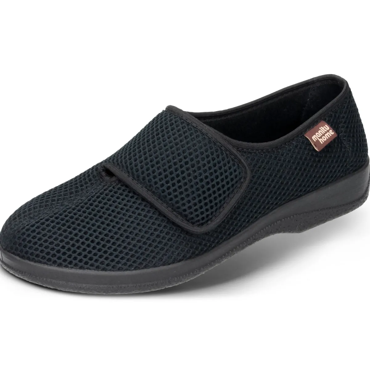 Angenehm weich – da drückt nichts, denn das mikrofeine Mesh-Gewebe wirkt druckentlastend und ist dehnbar. Es ist besonders atmungsaktiv und sorgt für Temperaturausgleich und Feuchtigkeitstransport. Mit Klettverschluss und rutschhemmender Laufsohle.