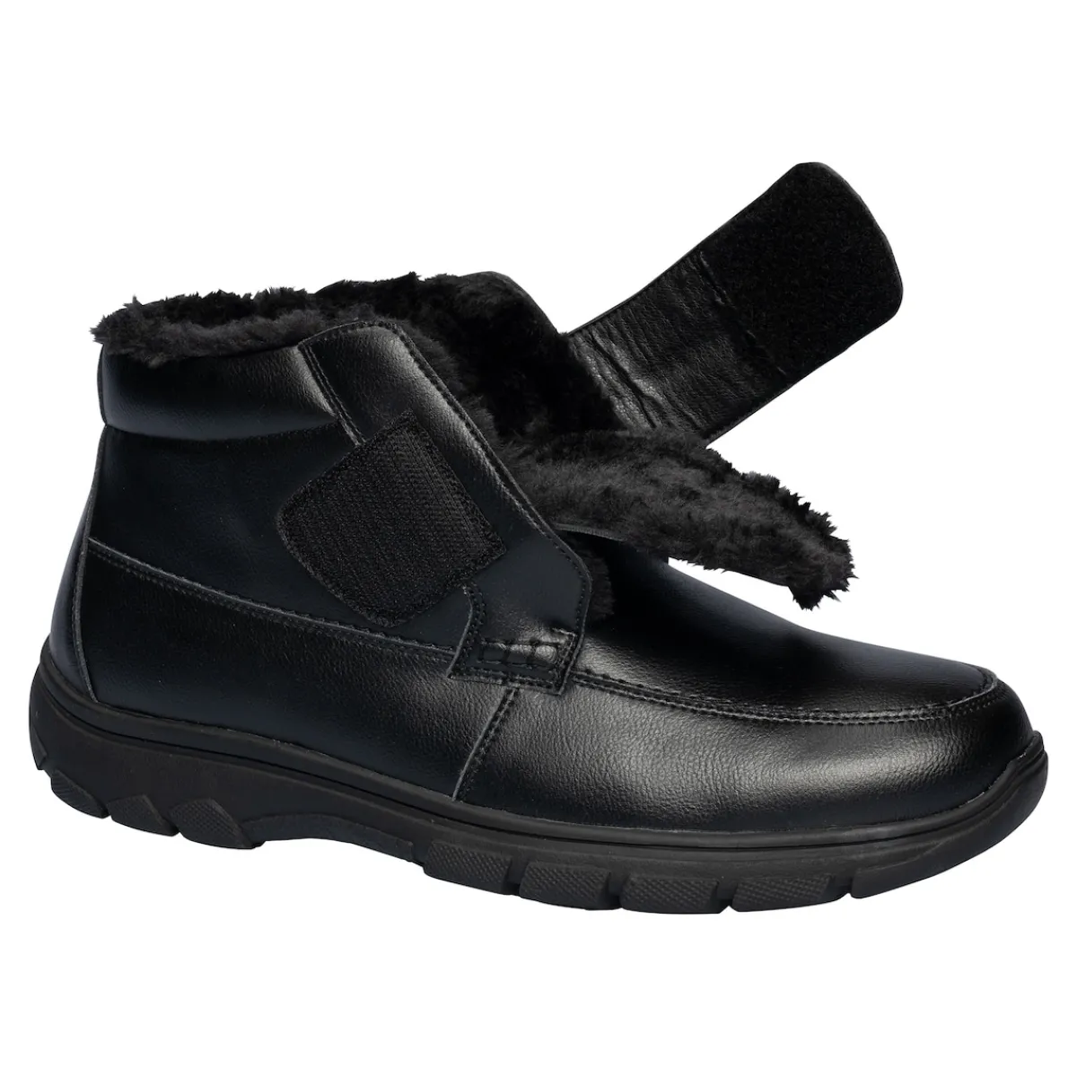Bei diesem Stiefel mit Obermaterial aus echtem Leder ist Wohlfühlen angesagt, das bereits beim Anziehen beginnt. Dank Klettverschluss schlüpfen Sie mühelos hinein und können die Weite individuell an Ihre Fußbreite anpassen. Komplett mit Plüsch gefüttert, bleiben Ihre Füße auch bei kalten Temperaturen angenehm warm. Mit rutschhemmender Profil-Laufsohle.