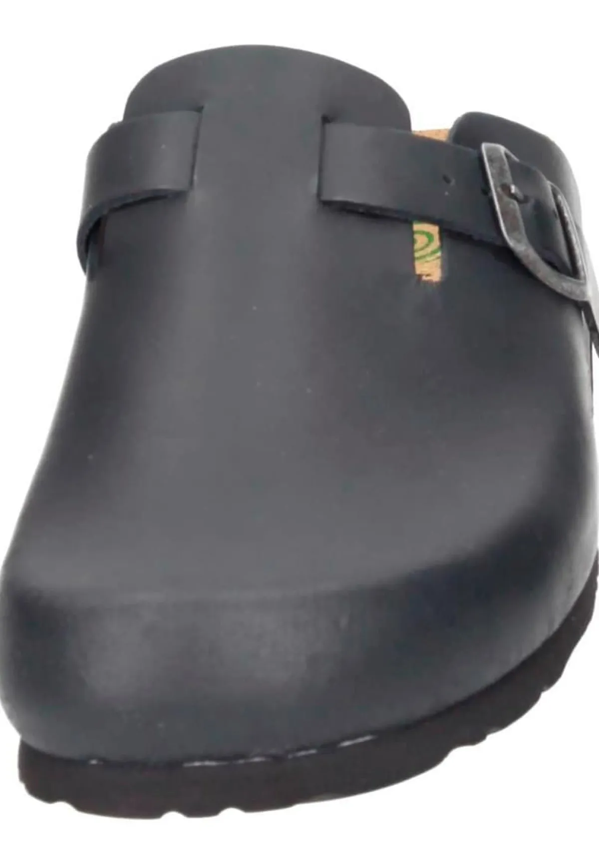 Bei diesem Produkt handelt es sich um einen Schuh aus der Kategorie Clogs ohne Absatz für Herren. Als Obermaterial wurde Fettleder verwendet und im inneren Bereich des Schuhs wurde ungefüttert und weiche Lederdecksohle, gepolstertes Naturform-Korkfußbett verarbeitet. Die Schuhweite dieses Artikels ist normal und somit standard. Als Verschlussart wurde Schlupfschuh gewählt und die Leichtzellsohle rundet das Produkt ab. Der Artikel fällt normal aus, bitte die gewohnte Größe bestellen. – Schuhweite: normal –