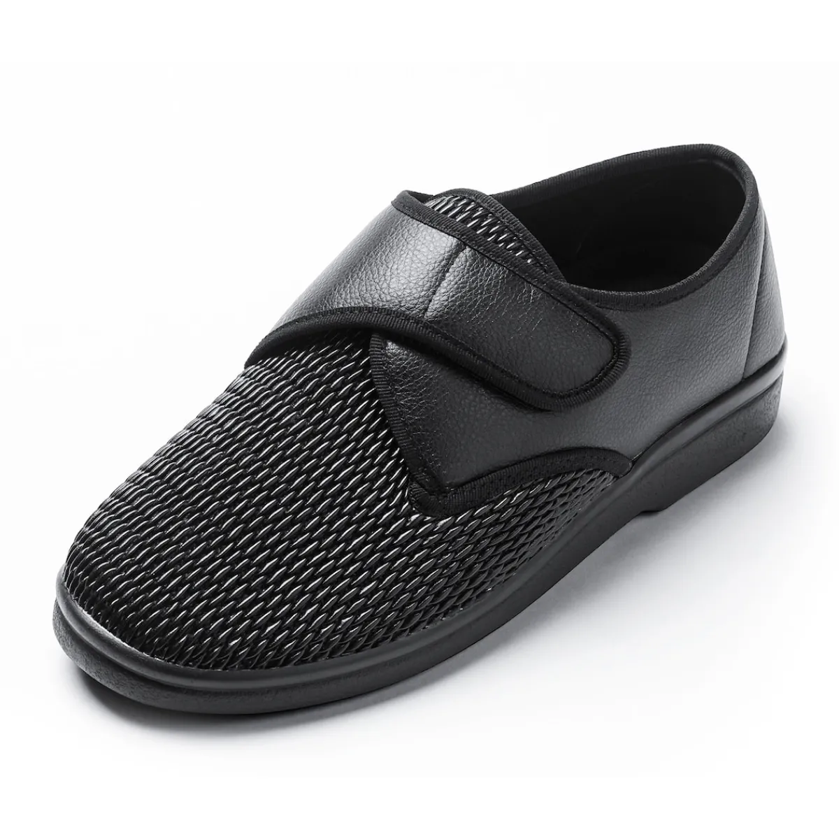 Die Therapie-Bequem-Schuhe machen ihrem Namen alle Ehre. Denn sie sind von A bis Z auf Komfort ausgerichtet – auch für druckempfindliche Füße. Schon das Hineinschlüpfen ist dank praktischem Klettverschluss kinderleicht. Dank des komfortablen Stretch-Materials im Vorfußbereich passt sich der Schuh weich und flexibel an fast alle Fußformen an.